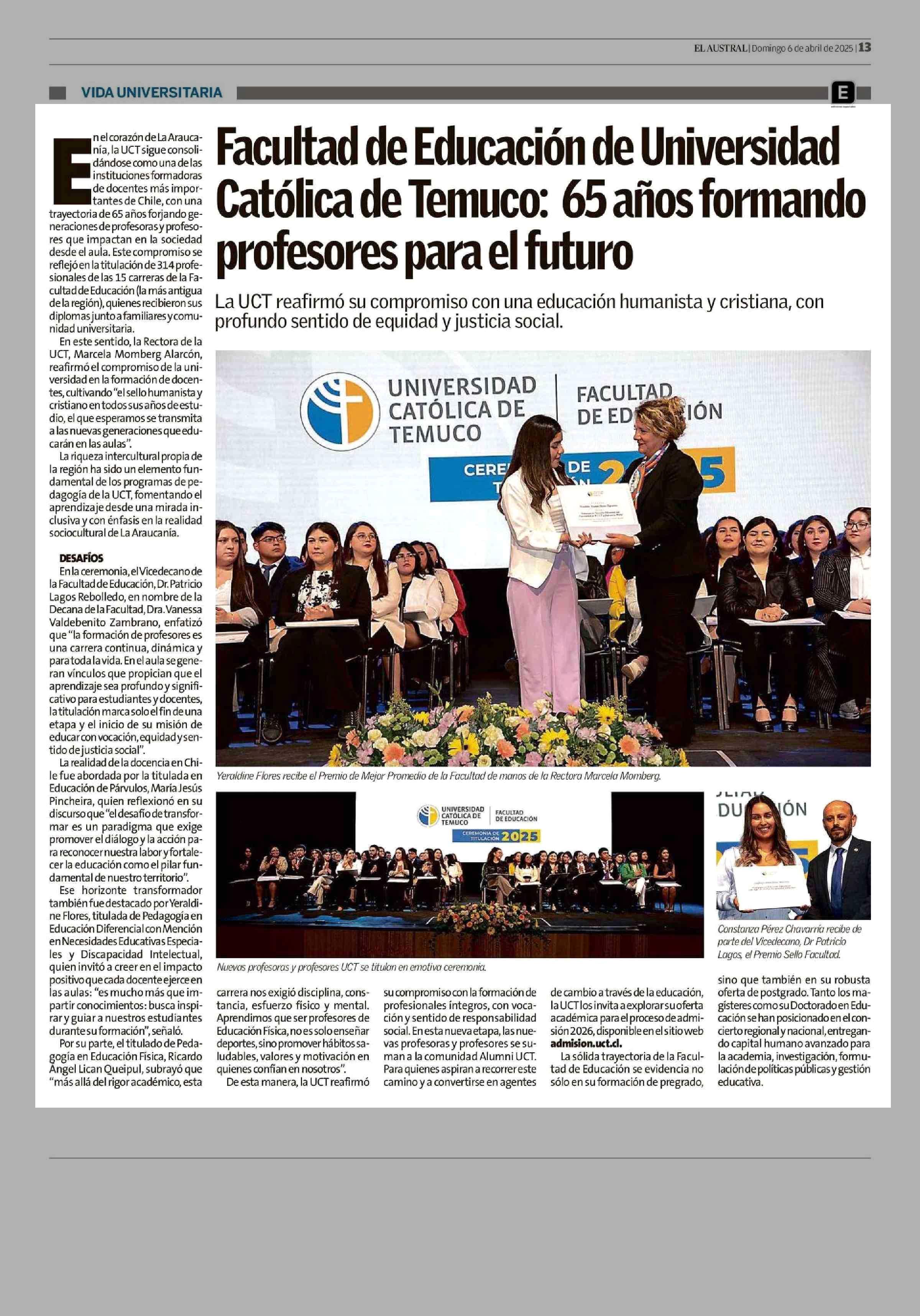 Facultad de Educación de Universidad Católica de Temuco: 65 años formando profesores para el futuro 06-04-2025 El Austral de la Araucanía |