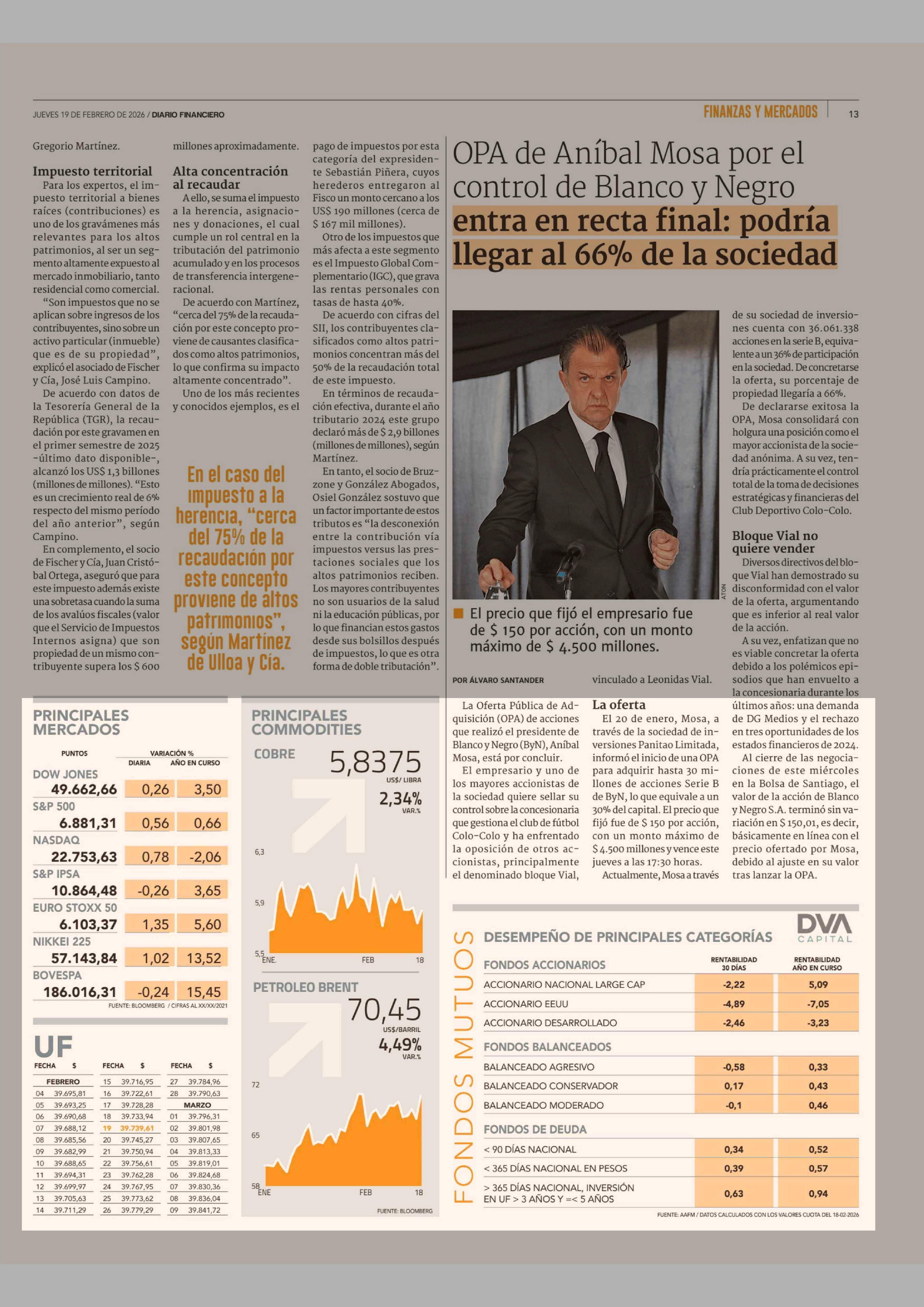 Indicadores Económicos: MERCADOS 19-02-2026 Diario Financiero |