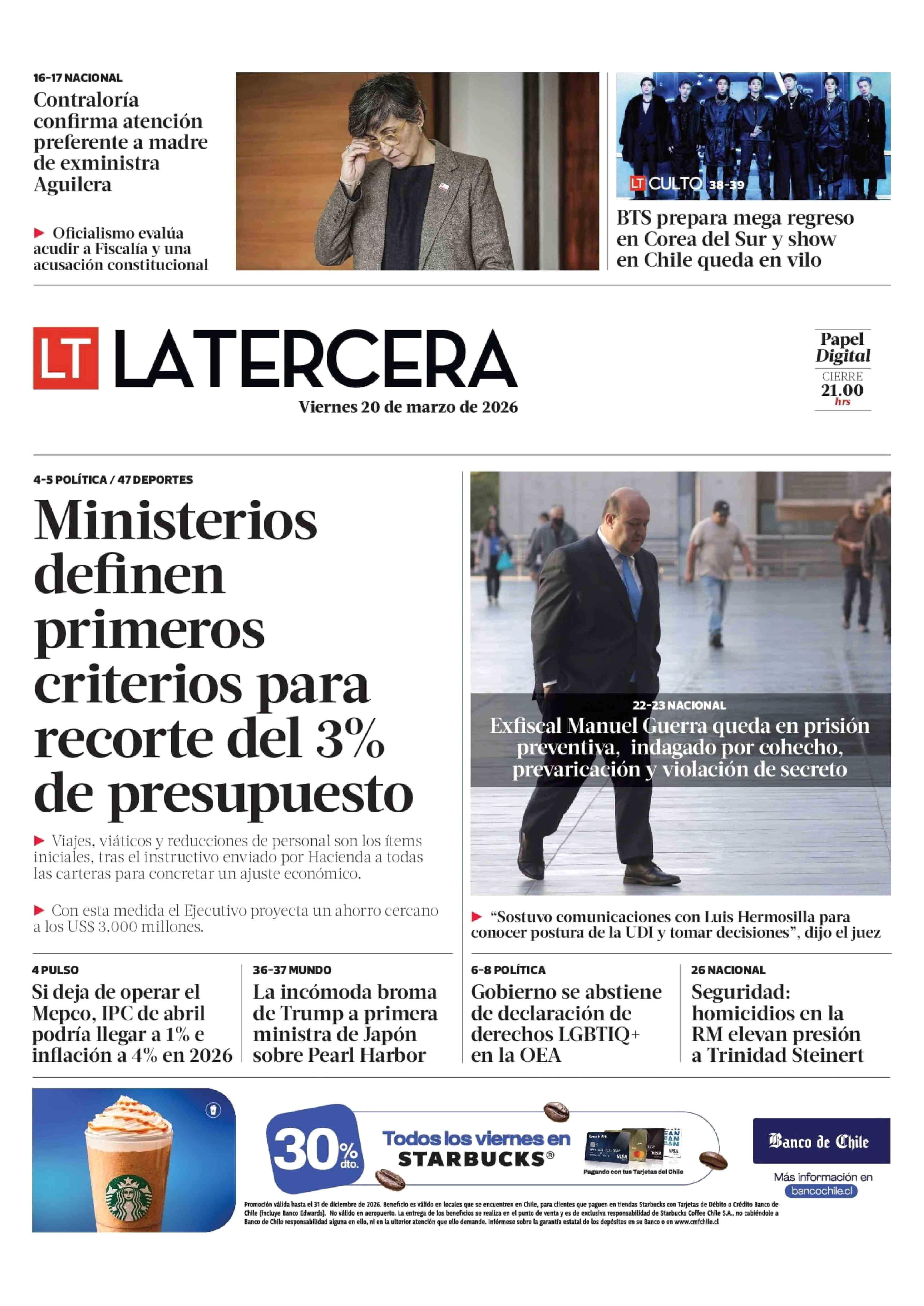 PORTADA LA TERCERA CHILE 20-03-2026 La Tercera |