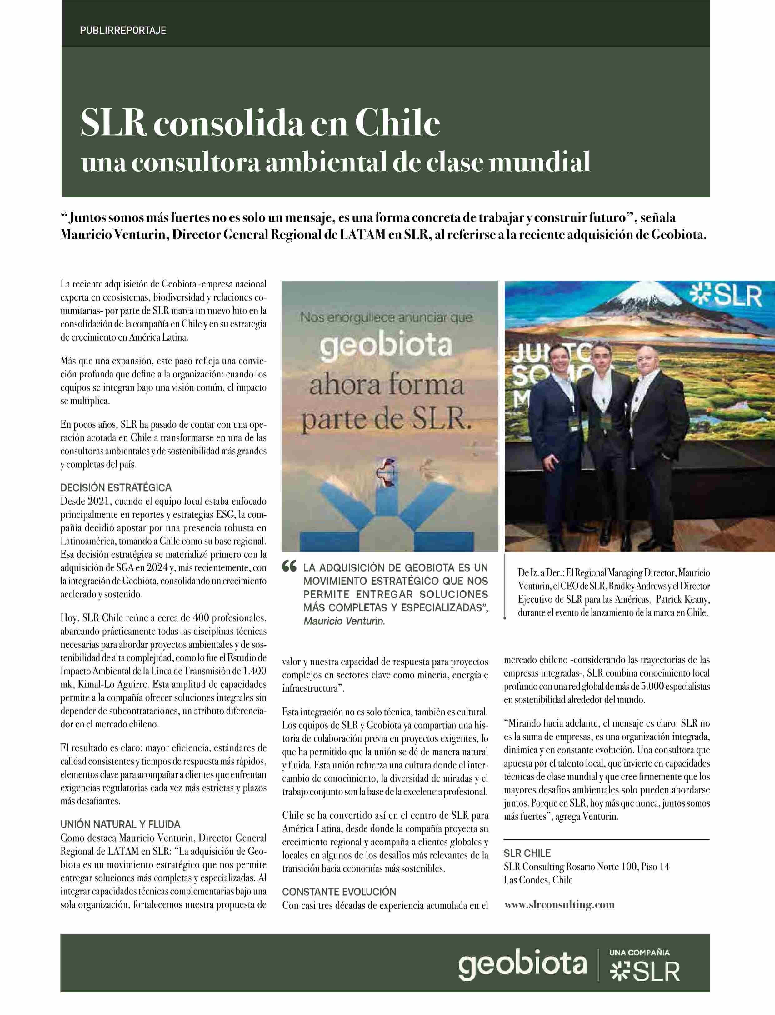 SLR consolida en Chile una consultora ambiental de clase mundial 23-04-2026 Revista Minería Chilena |