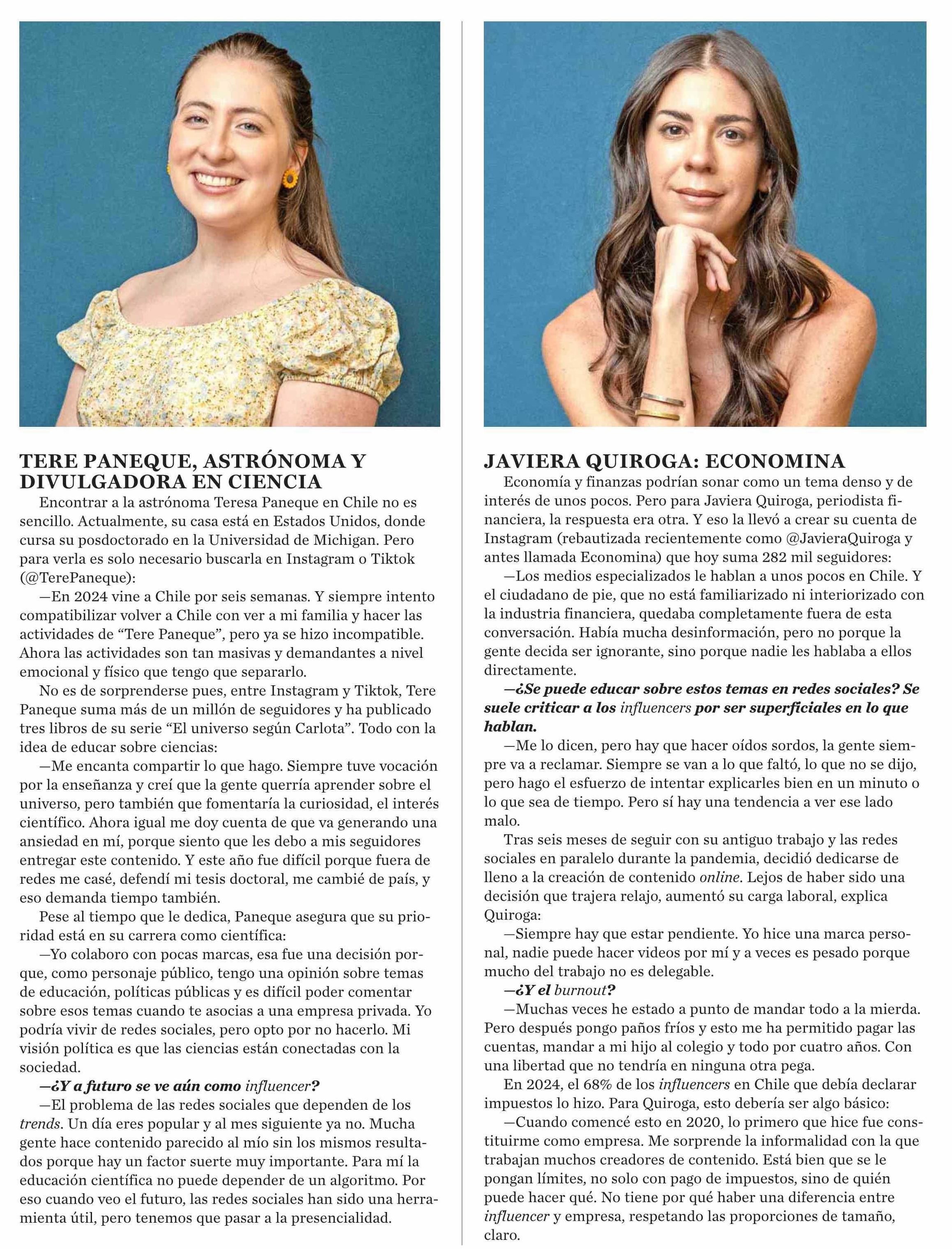 La ruta de 5 influencers expertas en su área 14-01-2025 El Mercurio |