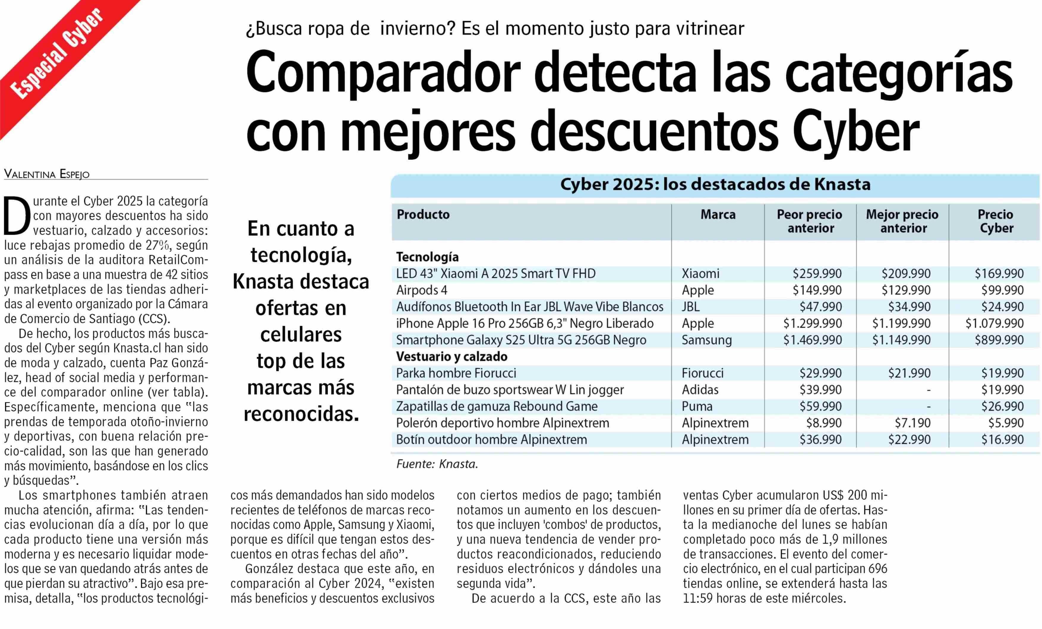 | Título: | Comparador detecta las categorias con mejores descuentos Cyber |