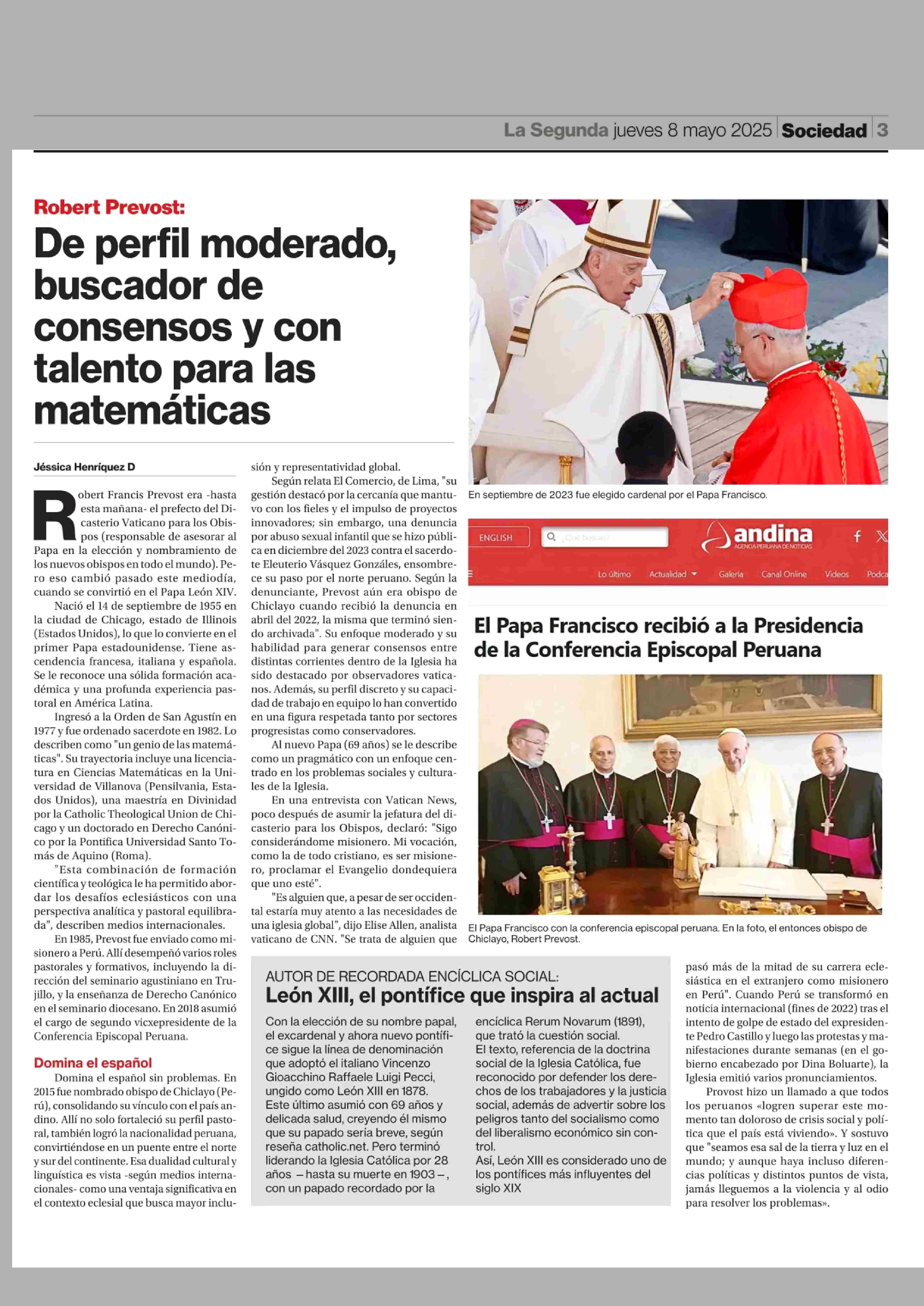 De perfil moderado, buscador de consensos y con talento para las matemáticas 08-05-2025 La Segunda |