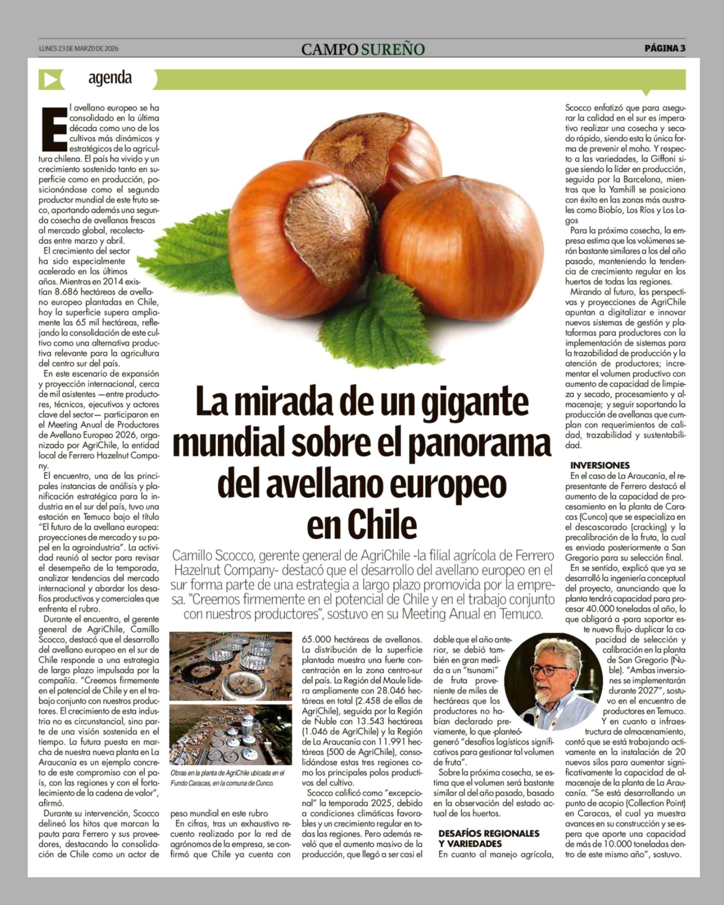 La mirada de un gigante mundial sobre el panorama del avellano europeo en Chile 23-03-2026 Campo Sureño - Regiones IX, X y XIV |