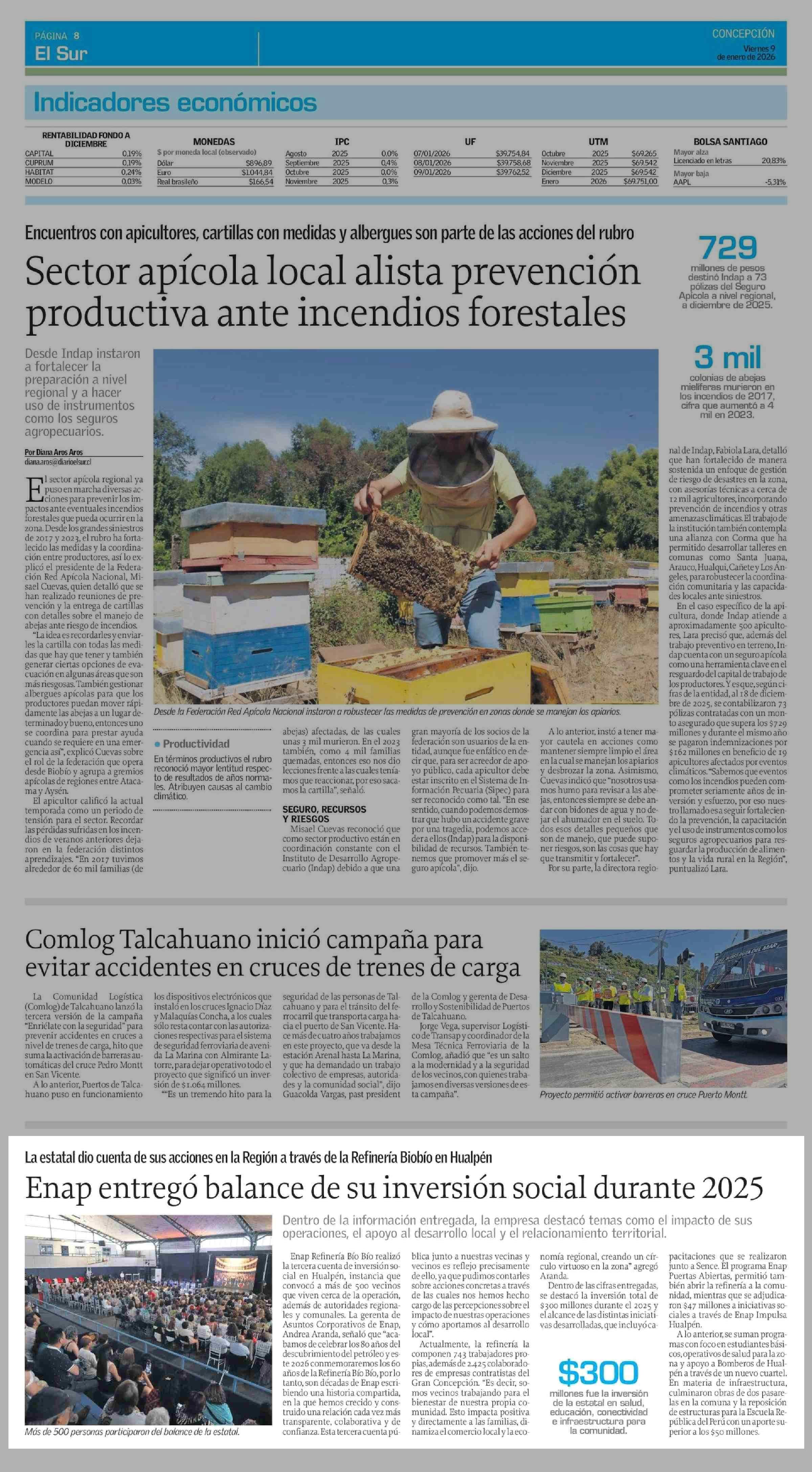 Enap entregó balance de su inversión social durante 2025 09-01-2026 El Sur |