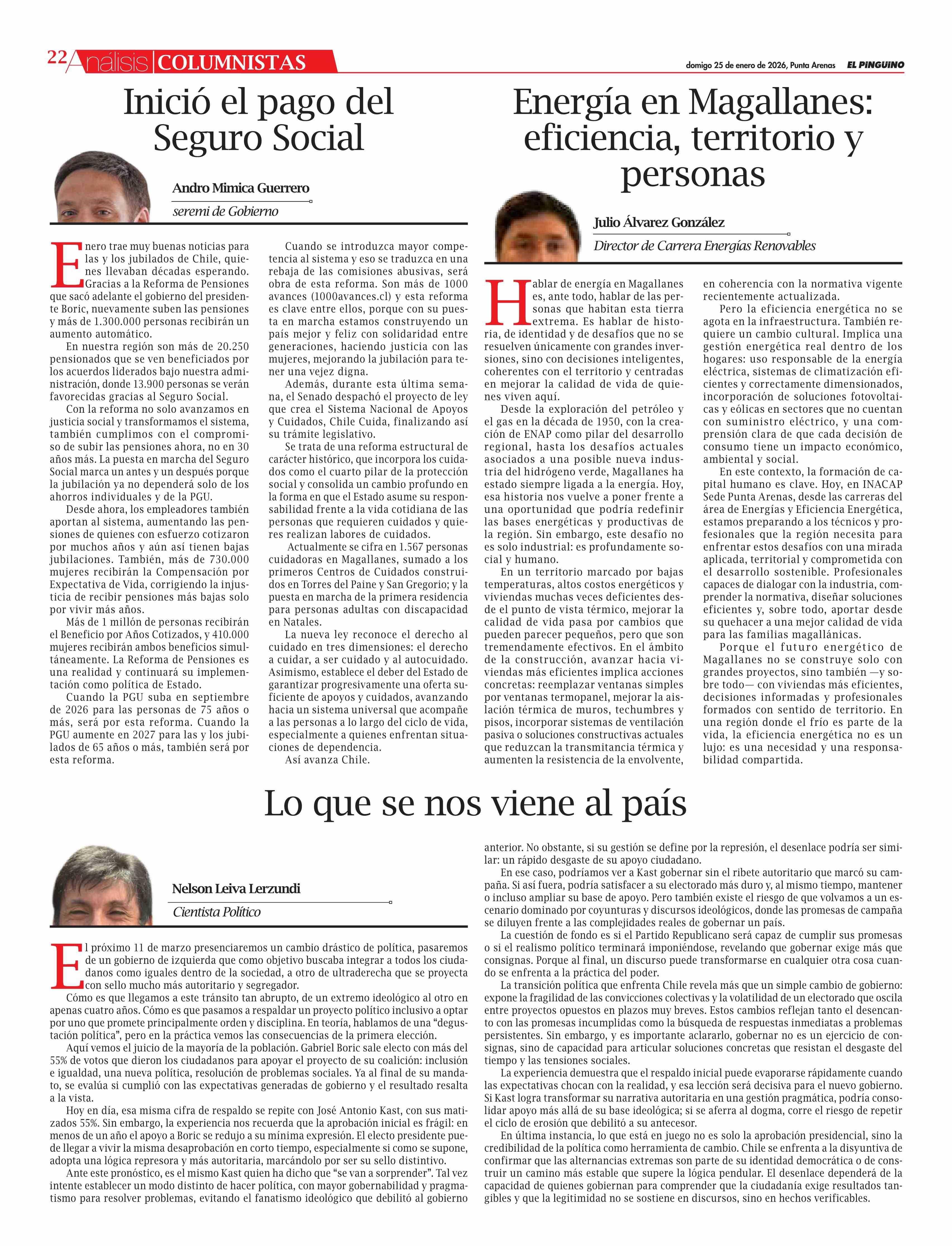 Fecha: 25-01-2026 Sector: Columnas de Opinión Región: Región de Magallanes y de la Antártica Chilena