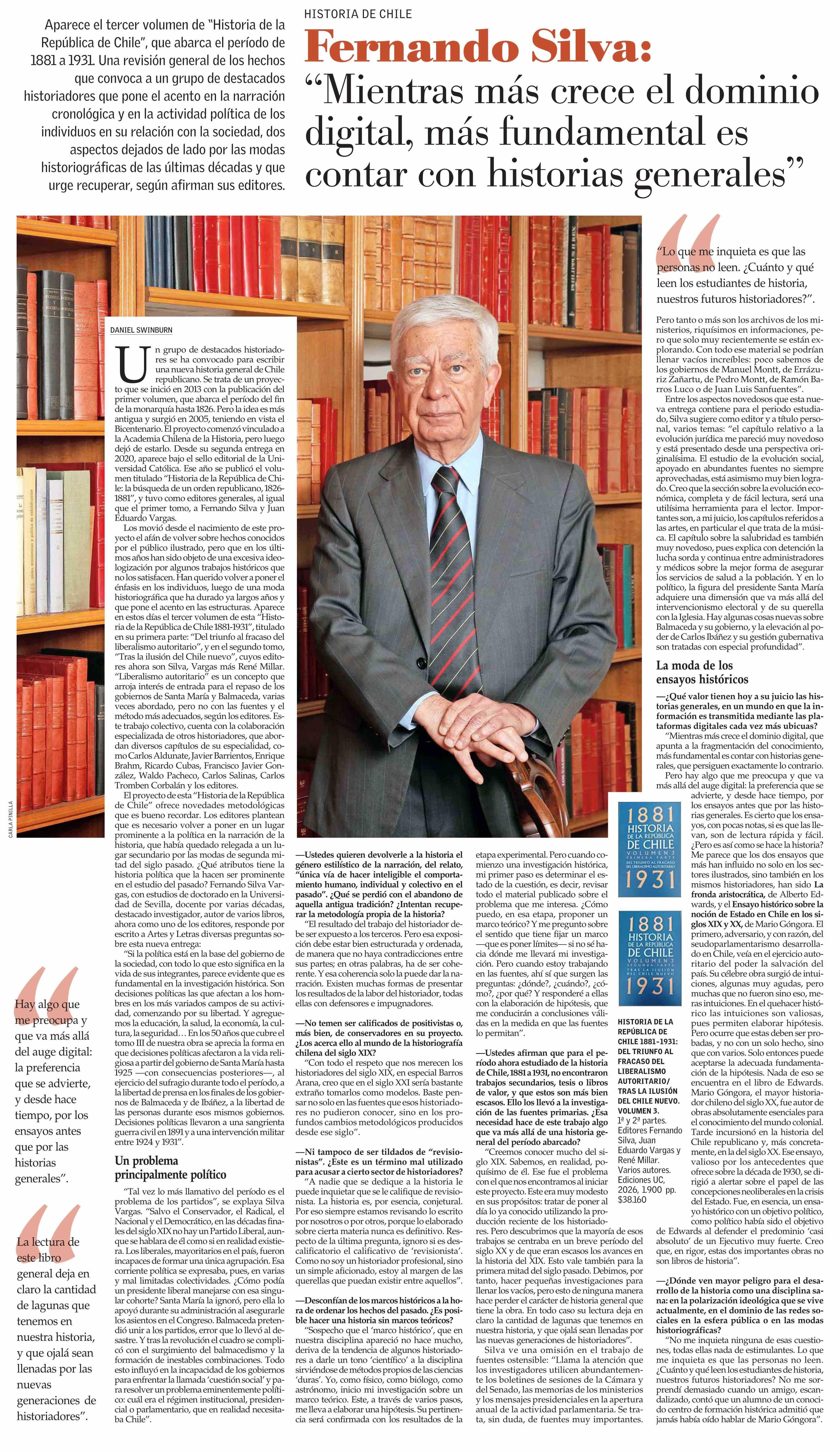 Fernando Silva: “Mientras más crece el dominio digital, más fundamental es contar con historias generales” 12-04-2026 El Mercurio |
