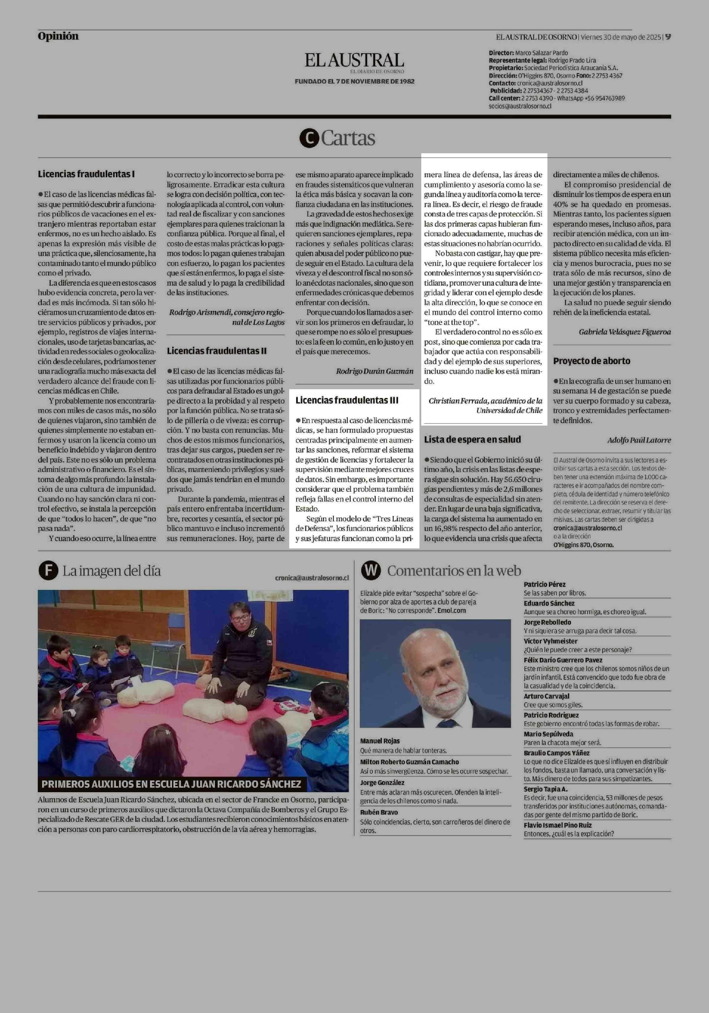 CARTAS: Licencias fraudulentas III 30-05-2025 El Austral de Osorno |