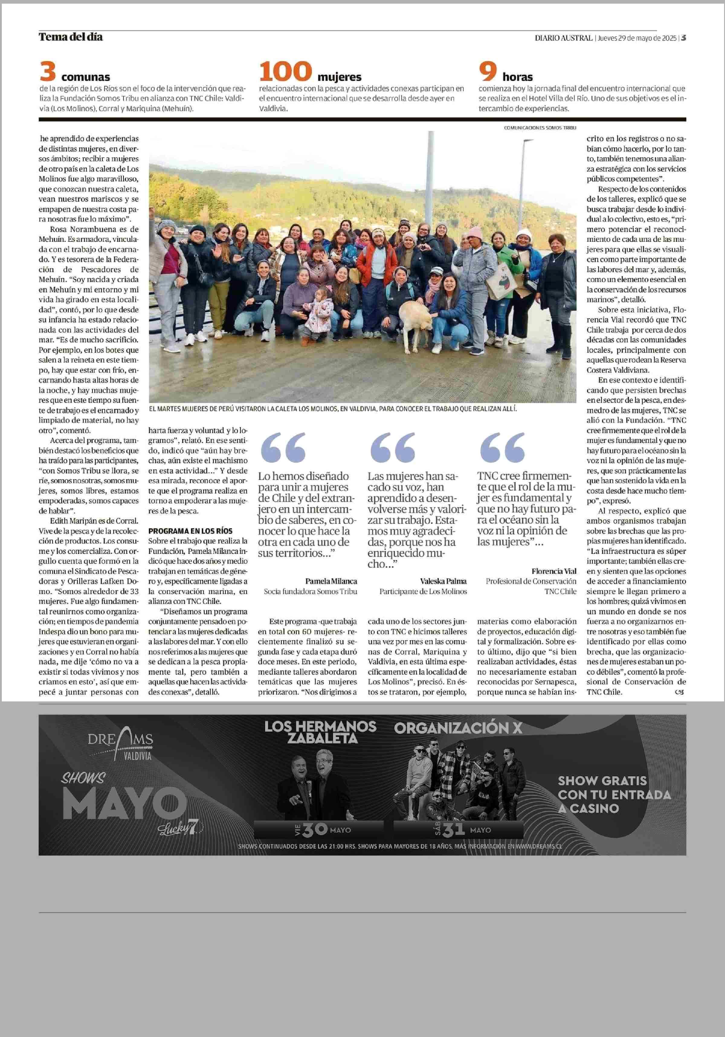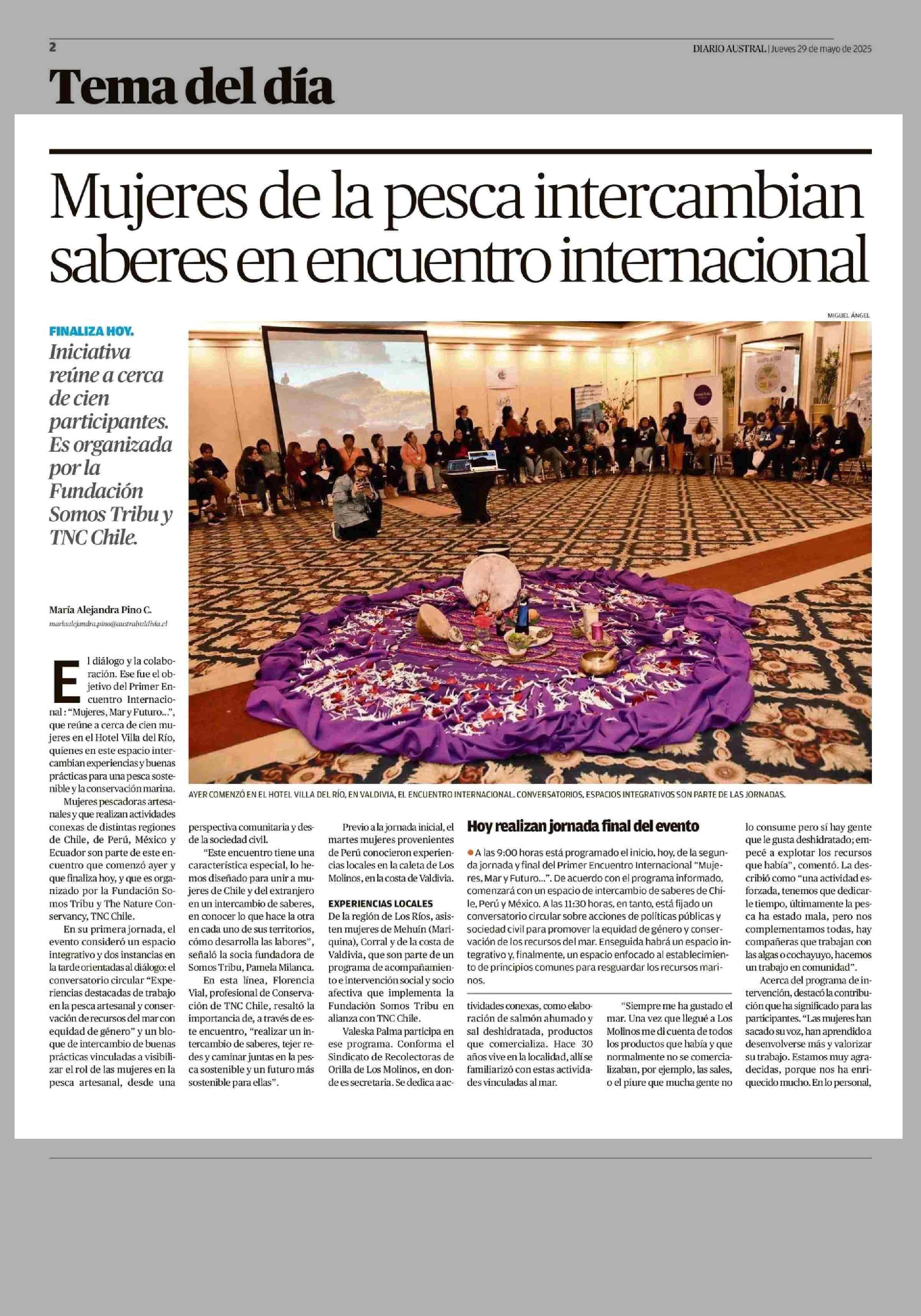 Mujeres de la pesca intercambian saberes en encuentro internacional 29-05-2025 Diario Austral Región de Los Ríos |