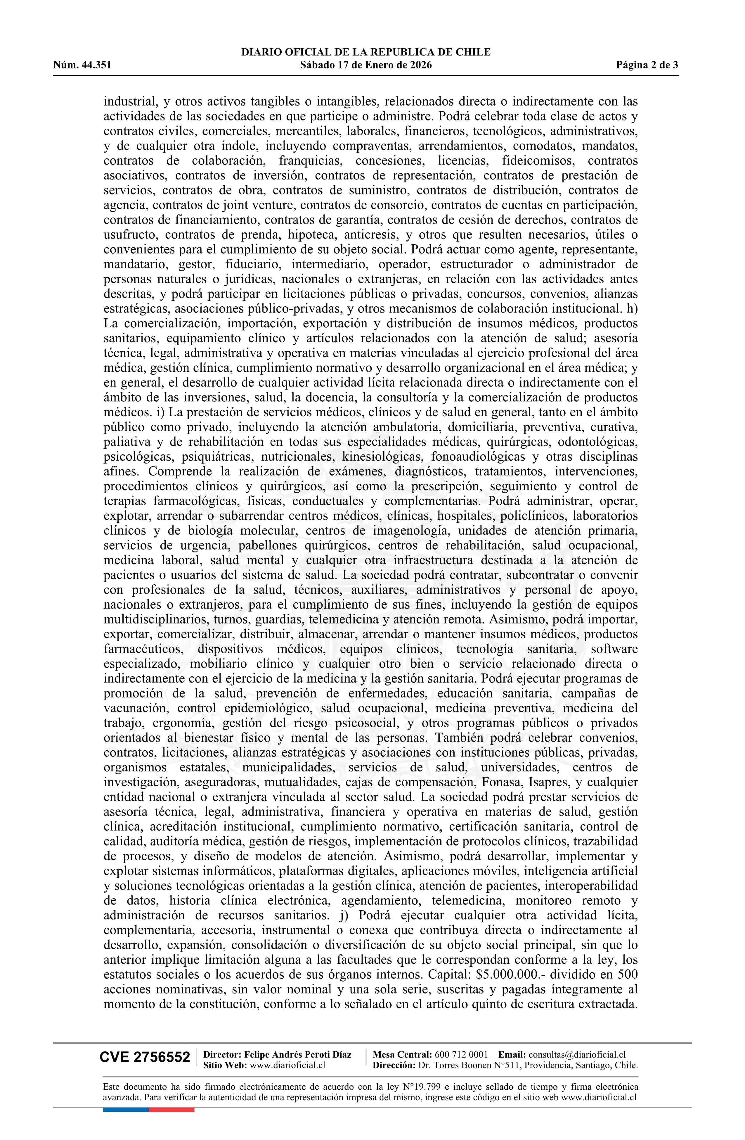 INVERSIONES HEALTHCARE LATAM SpA 17-01-2026 Diario Oficial Edición Electrónica |