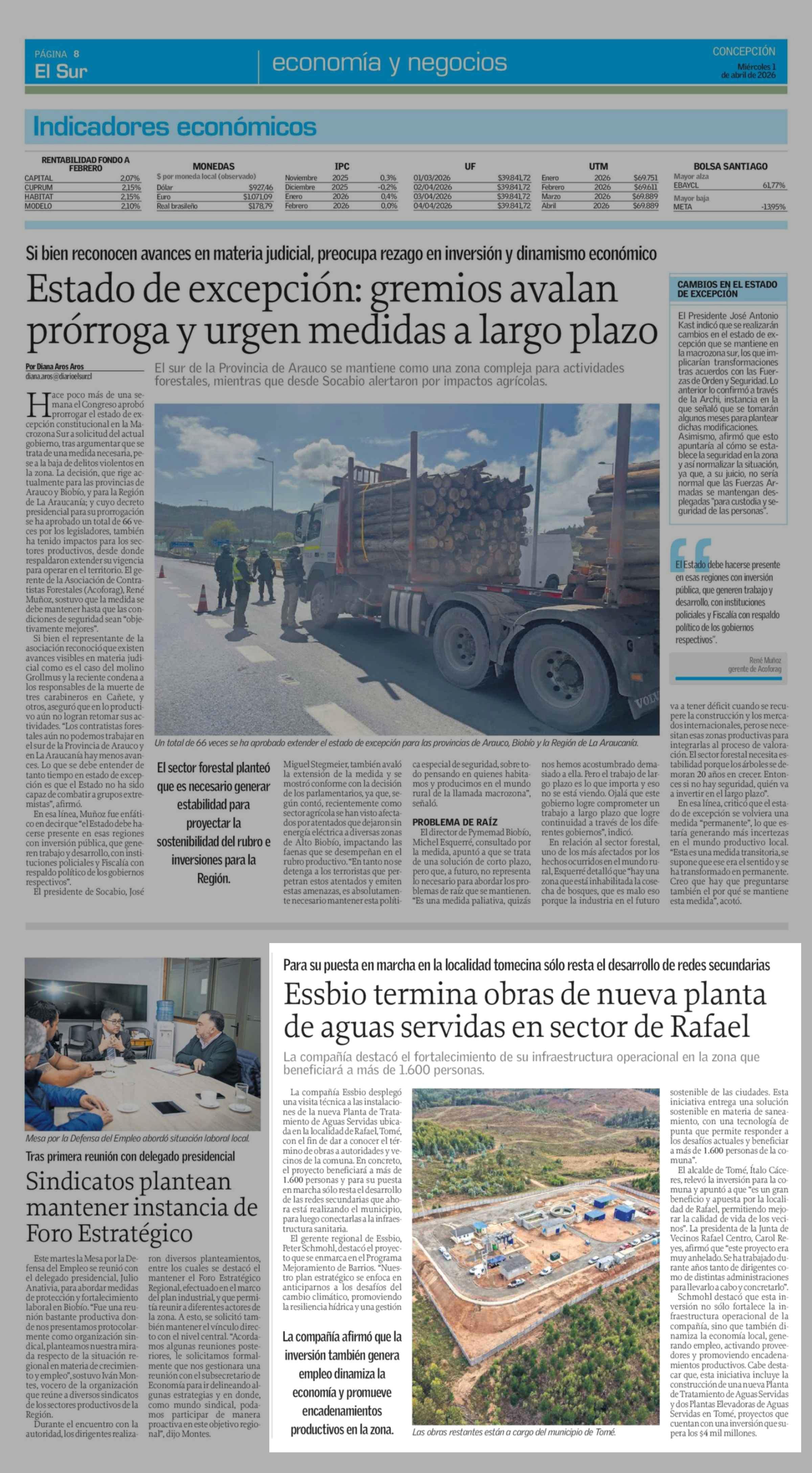 Essbio termina obras de nueva planta de aguas servidas en sector de Rafael 01-04-2026 El Sur |