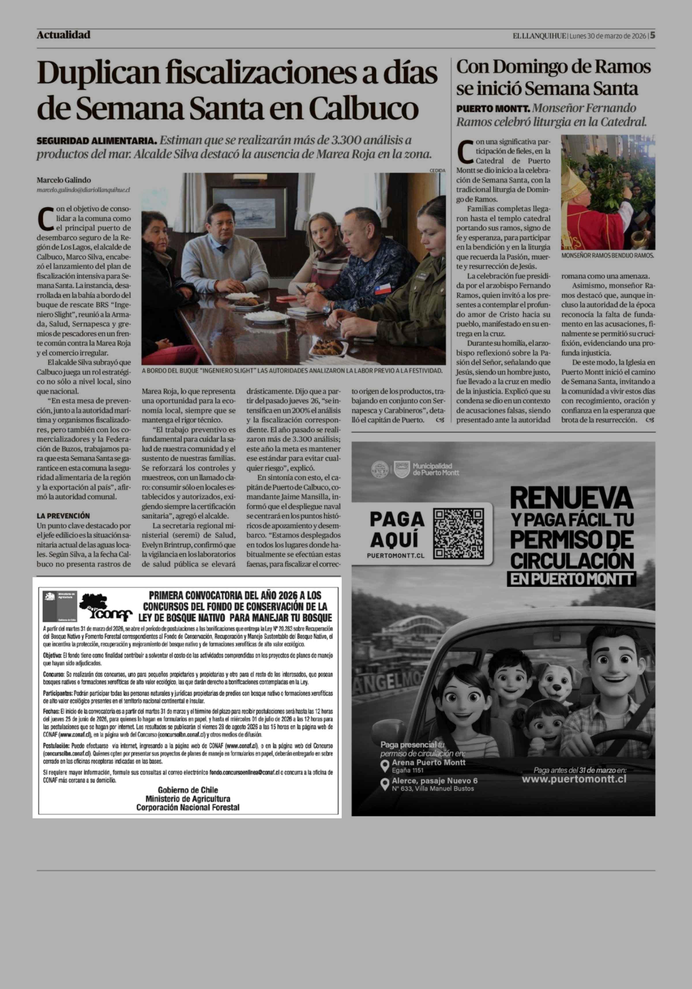 Aviso Licitaciones: PRIMERA CONVOCATORIA DEL AÑO 2026 A LOS CONCURSOS DEL FONDO DE CONSERVACIÓN DE LA LEY DE BOSQUE NATIVO PARA MANEJAR TU BOSQUE 30-03-2026 El Llanquihue |