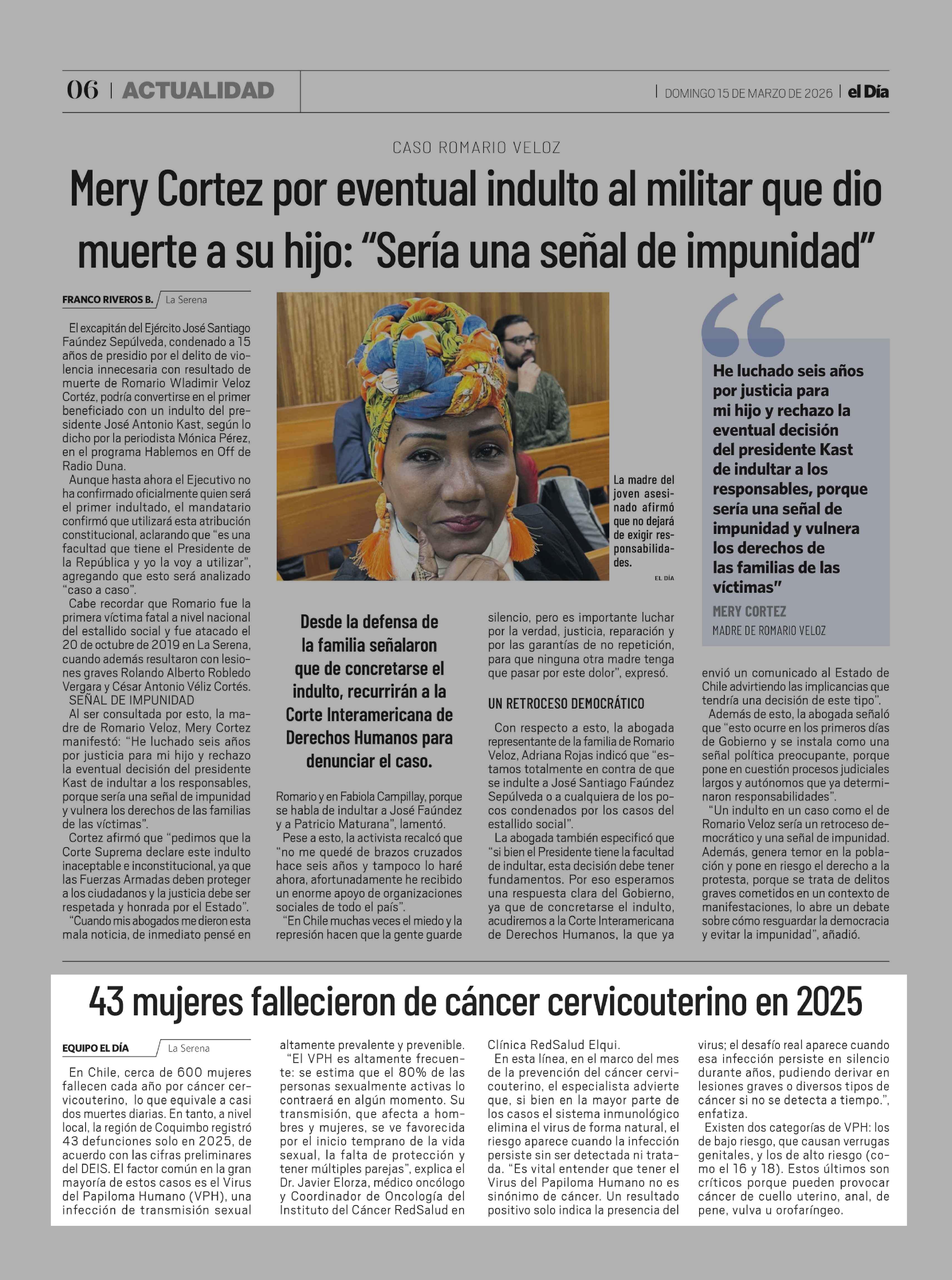 43 Mujeres fallecieron de cáncer cervicouterino en 2025 15-03-2026 El Día |
