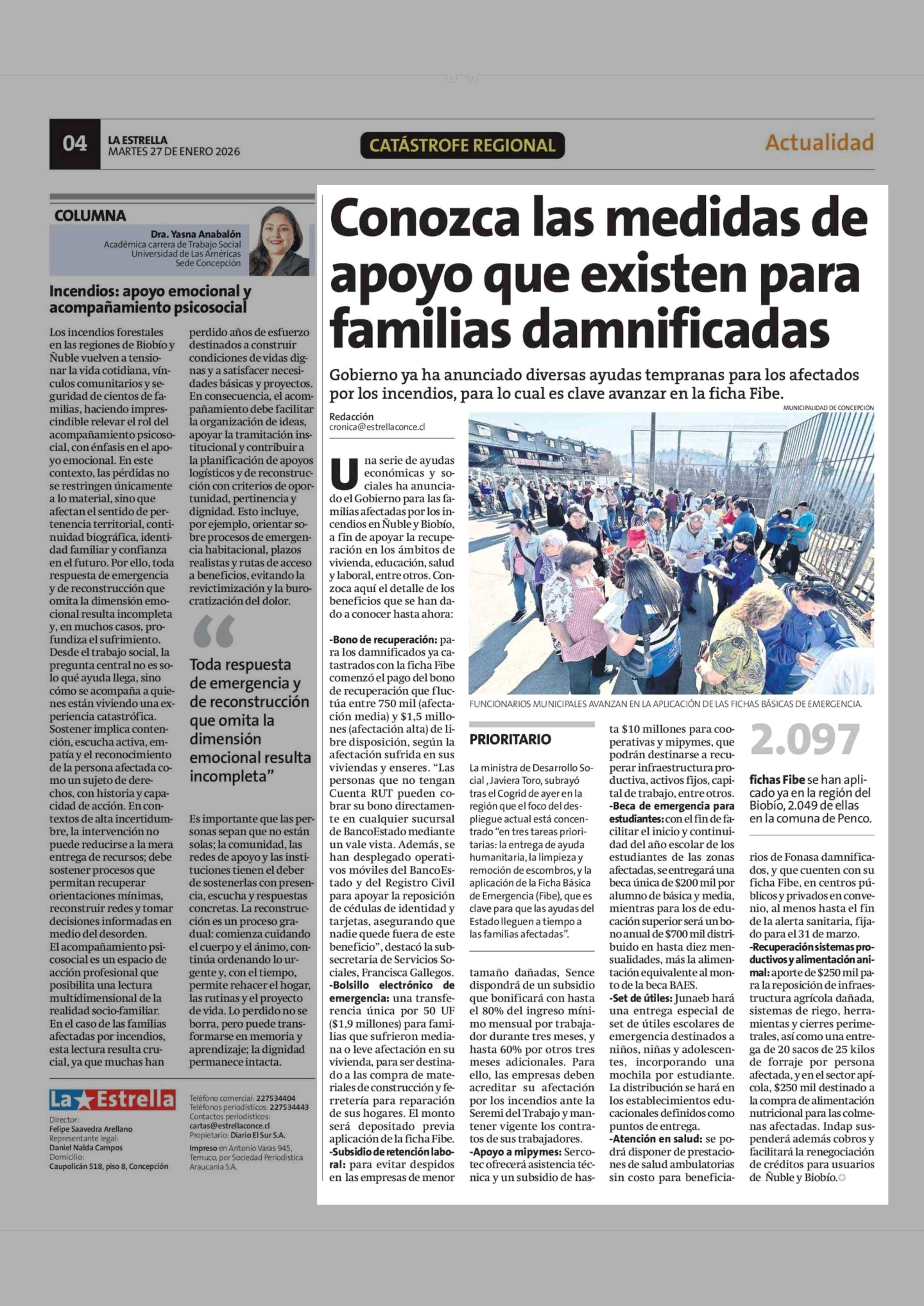 Conozca las medidas de apoyo que existen para familias damnificadas 27-01-2026 La Estrella de Concepción |