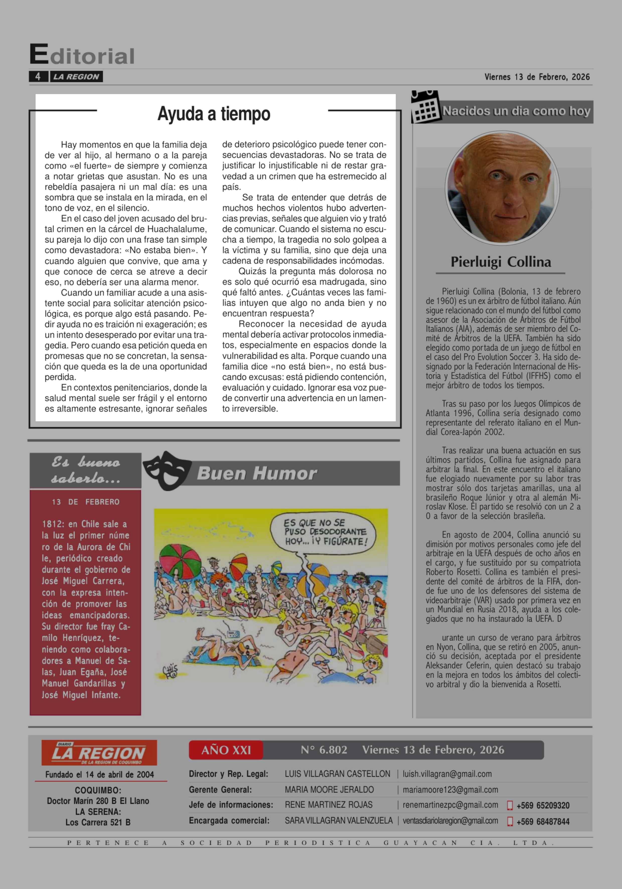 Editorial: Ayuda a tiempo 13-02-2026 Diario la Región |