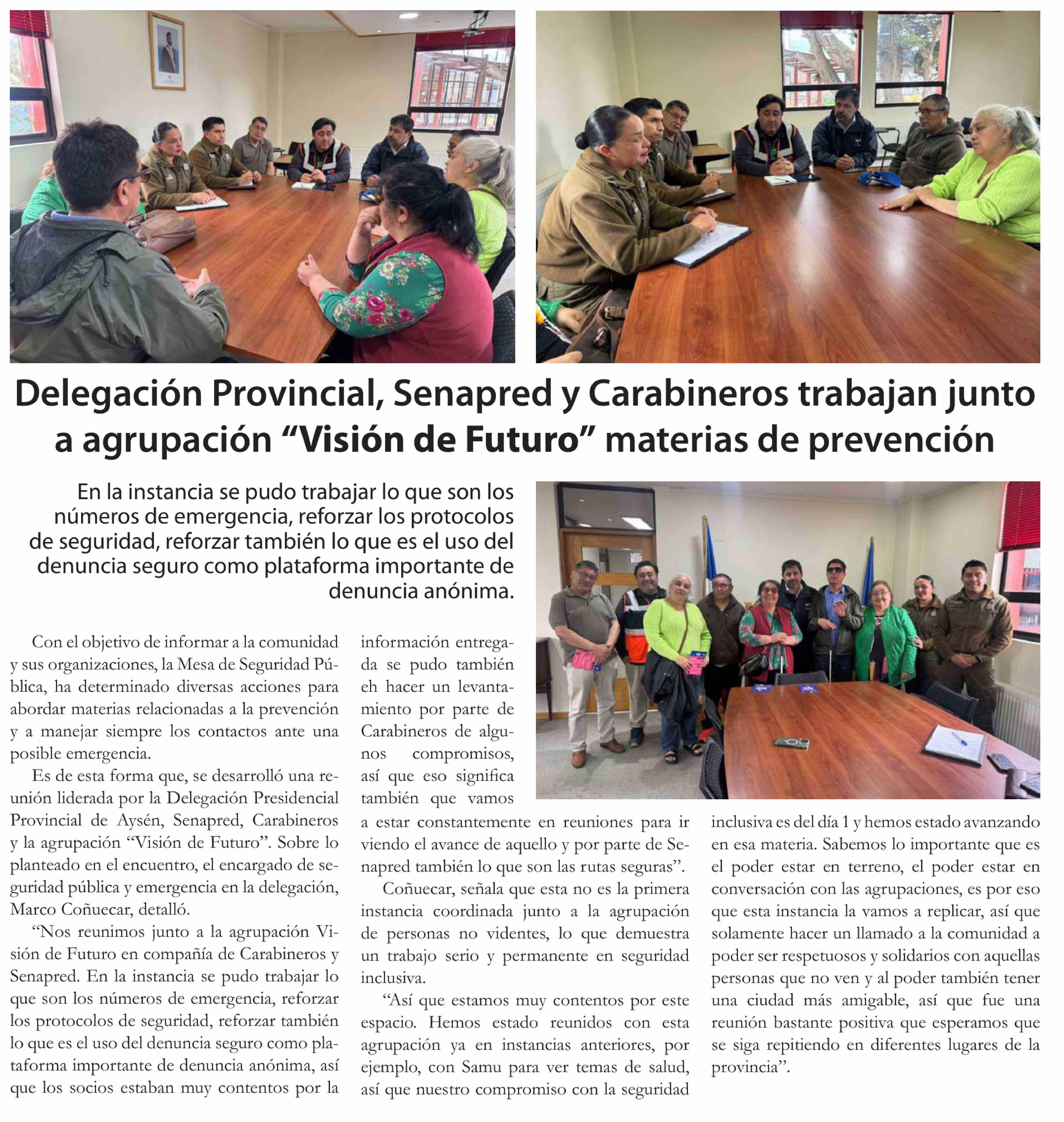 Título: Delegación Provincial, Senapred y Carabineros trabajan junto a agrupación "Visión de Futuro" materias de prevención