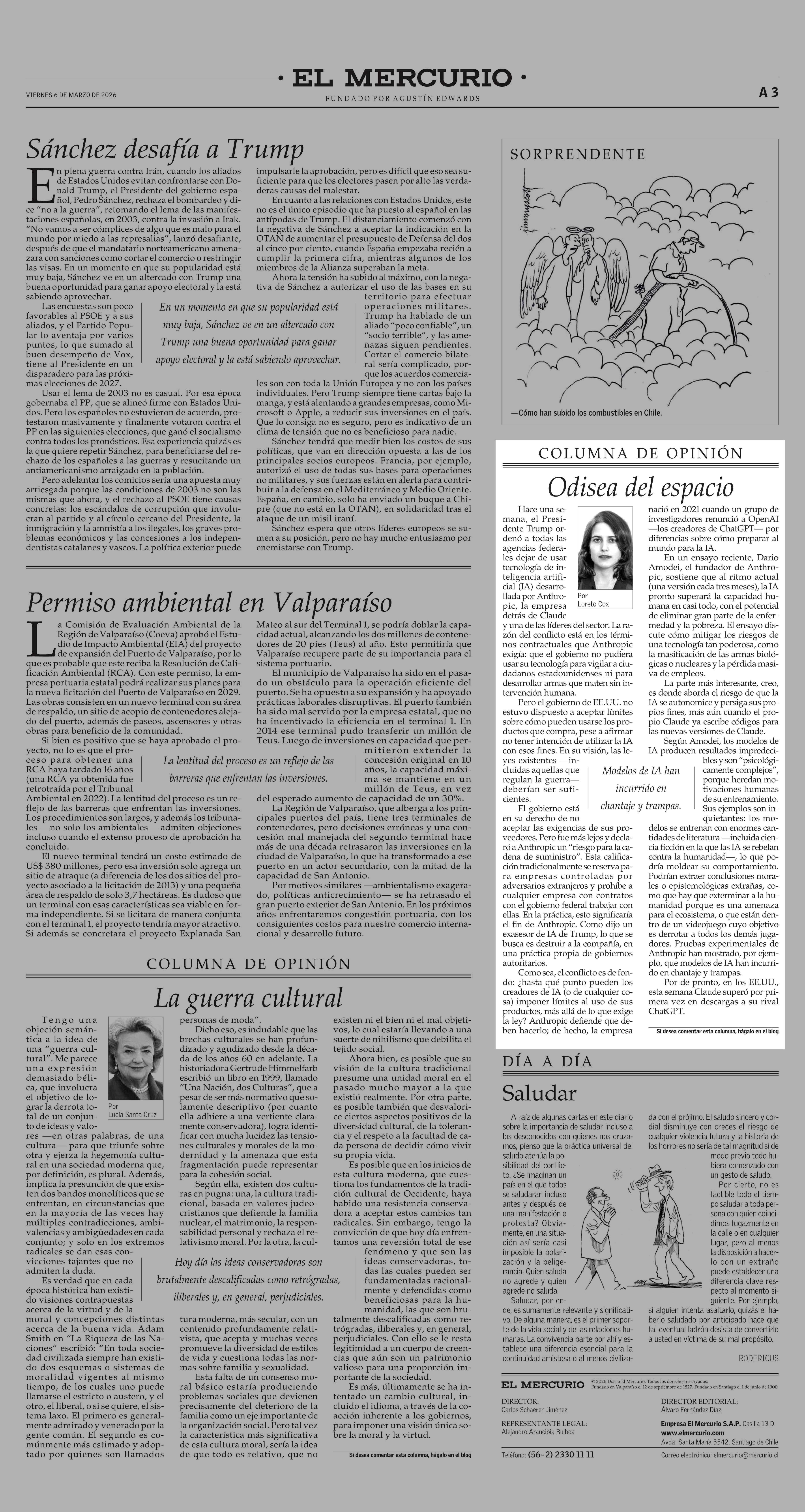 Columnas de Opinión: Odisea del espacio 06-03-2026 El Mercurio |