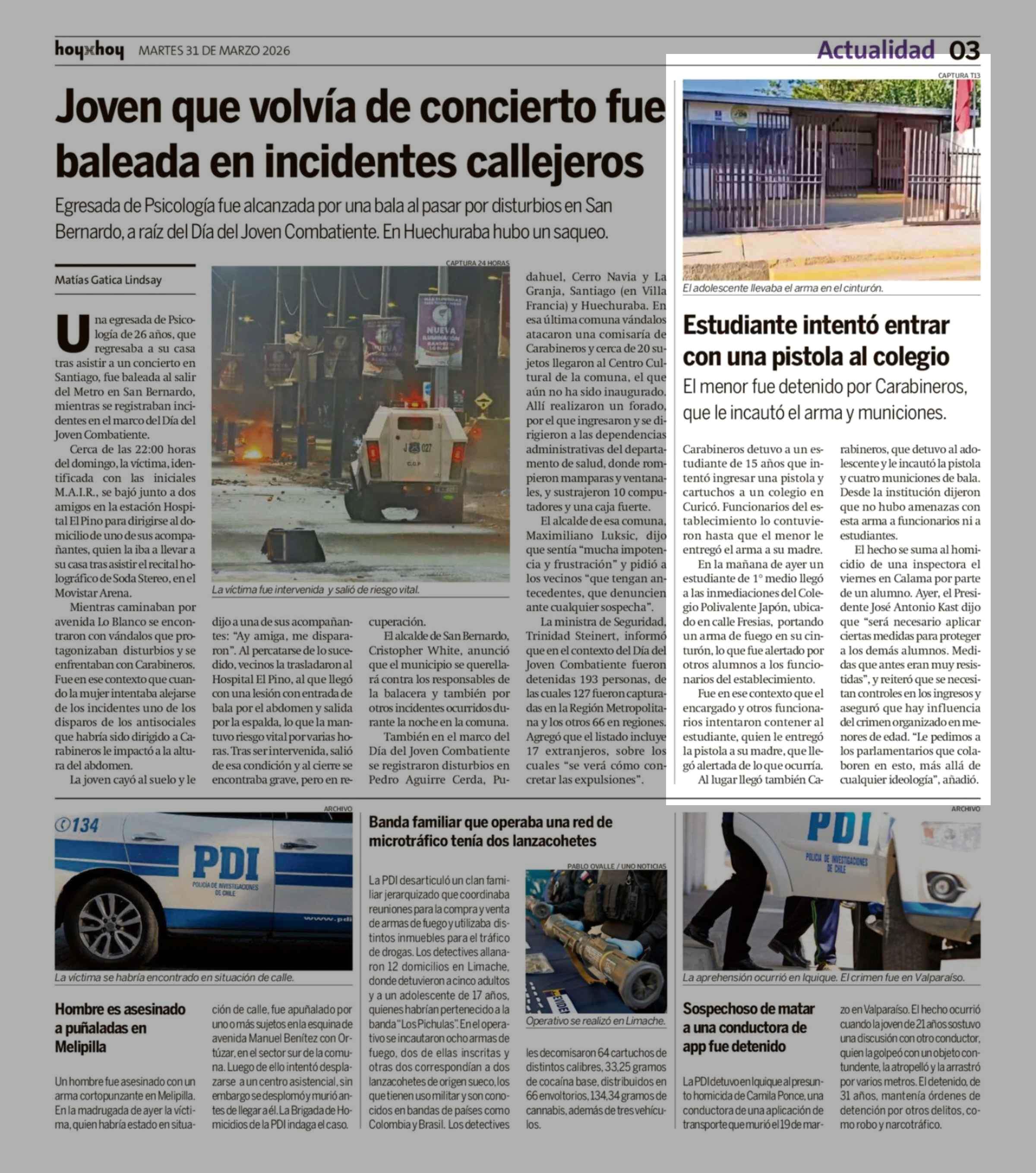 Fecha: 31-03-2026 Sector: Noticia general Región: Región Metropolitana de Santiago
