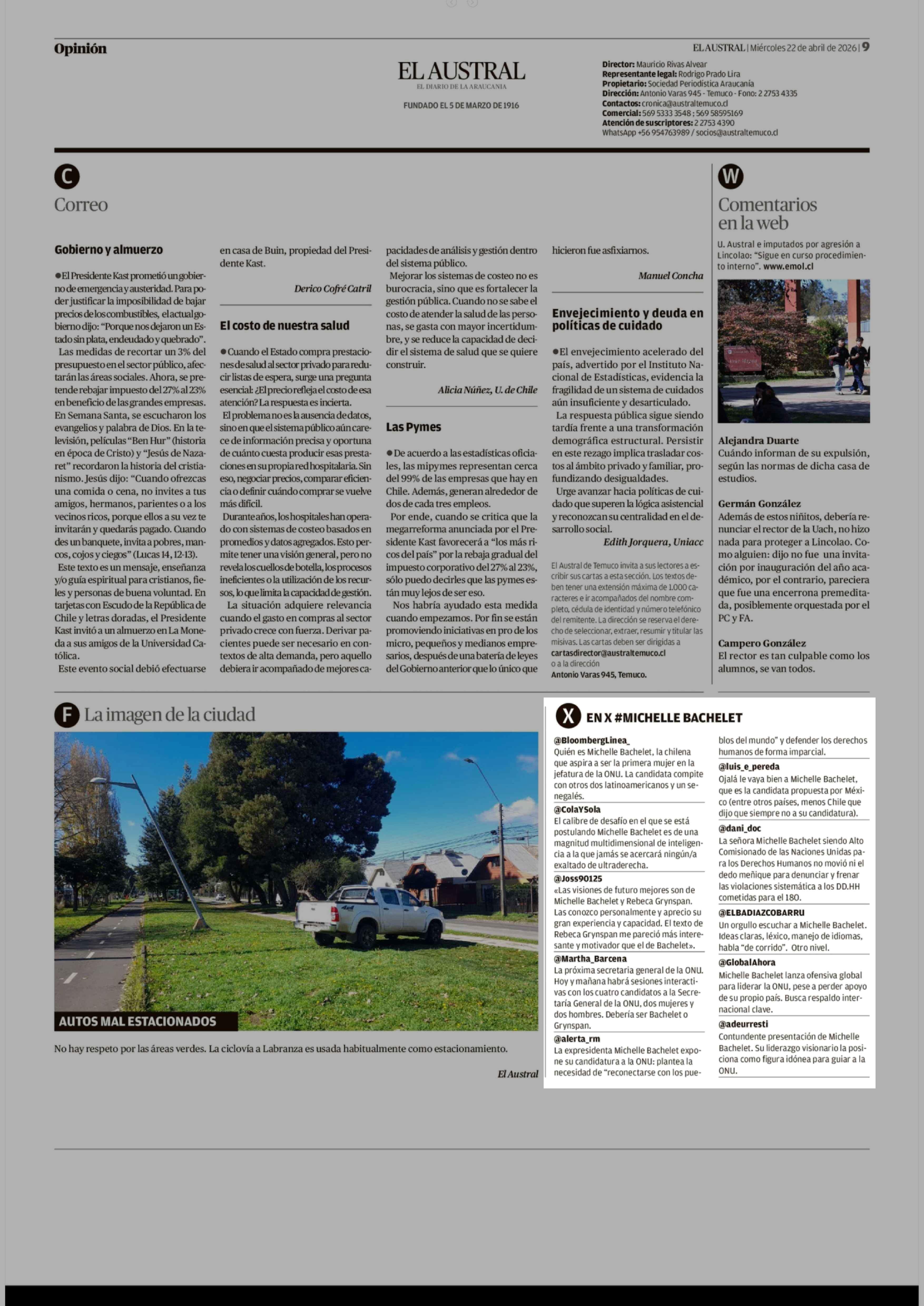 X ENX #MICHELLE BACHELET 22-04-2026 El Austral de la Araucanía |