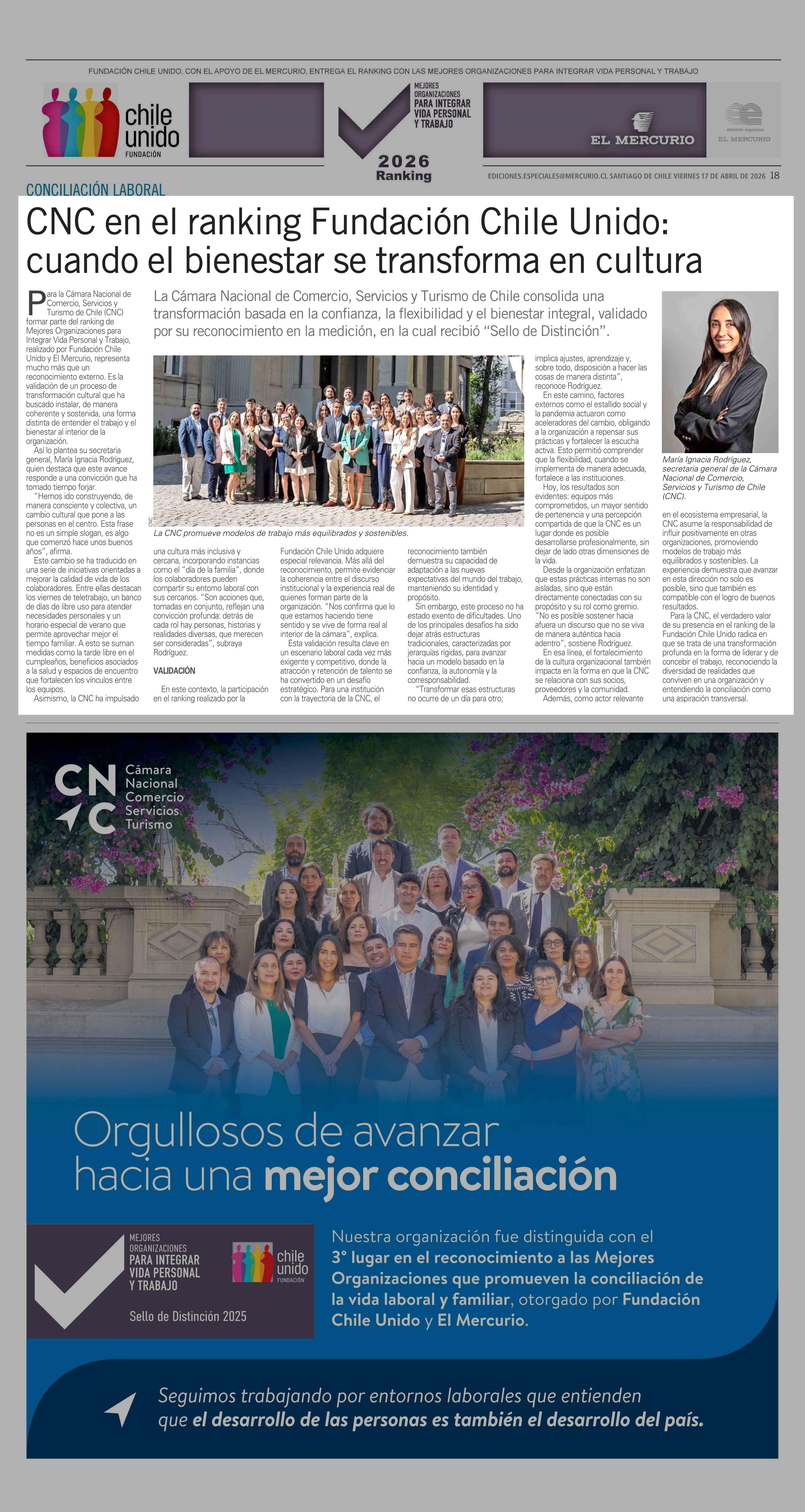 CNC en el ranking Fundación Chile Unido: cuando el bienestar se transforma en cultura 17-04-2026 El Mercurio |