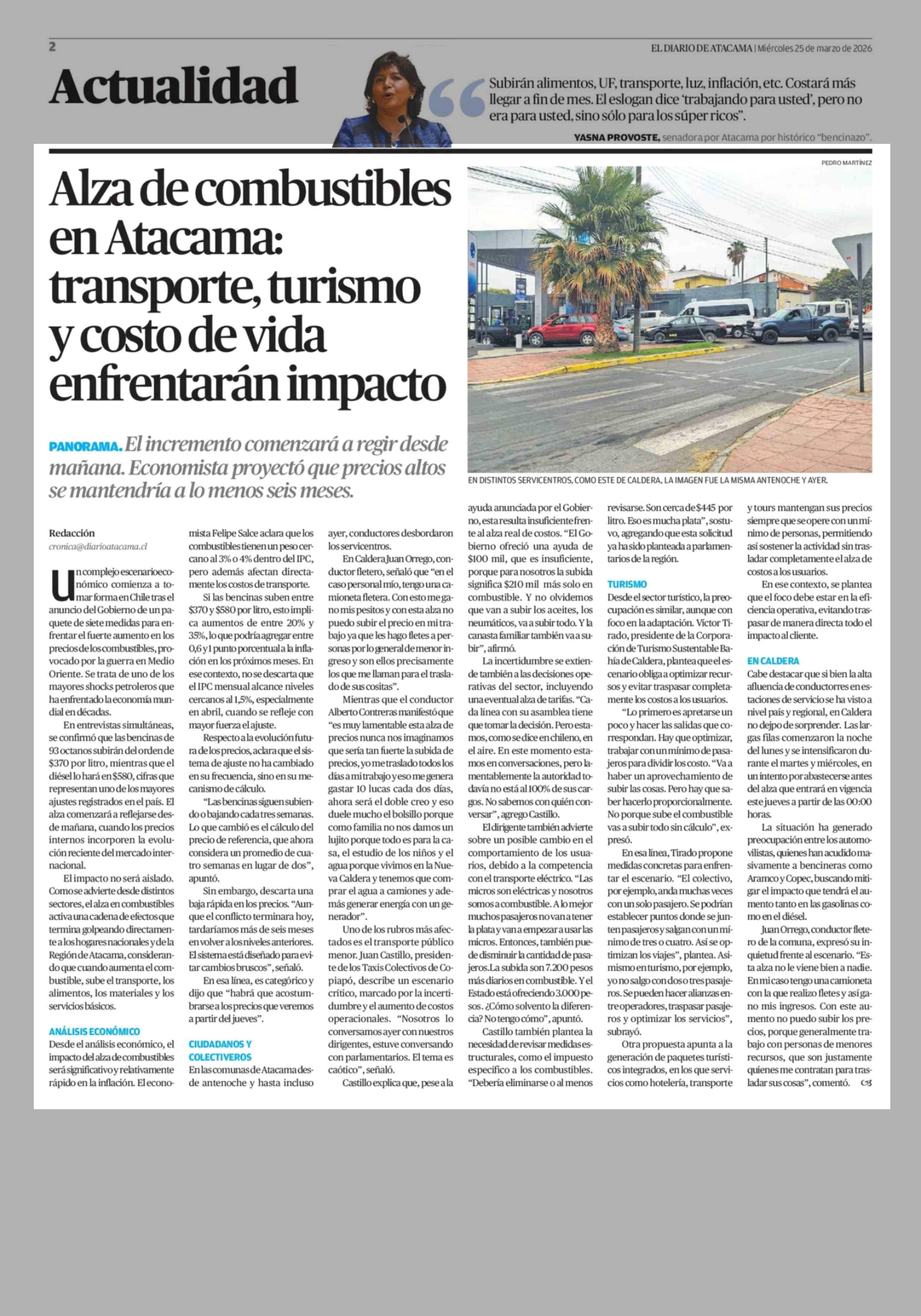 Título: Alza de combustibles en Atacama: transporte, turismo y costo de vida enfrentarán impacto
