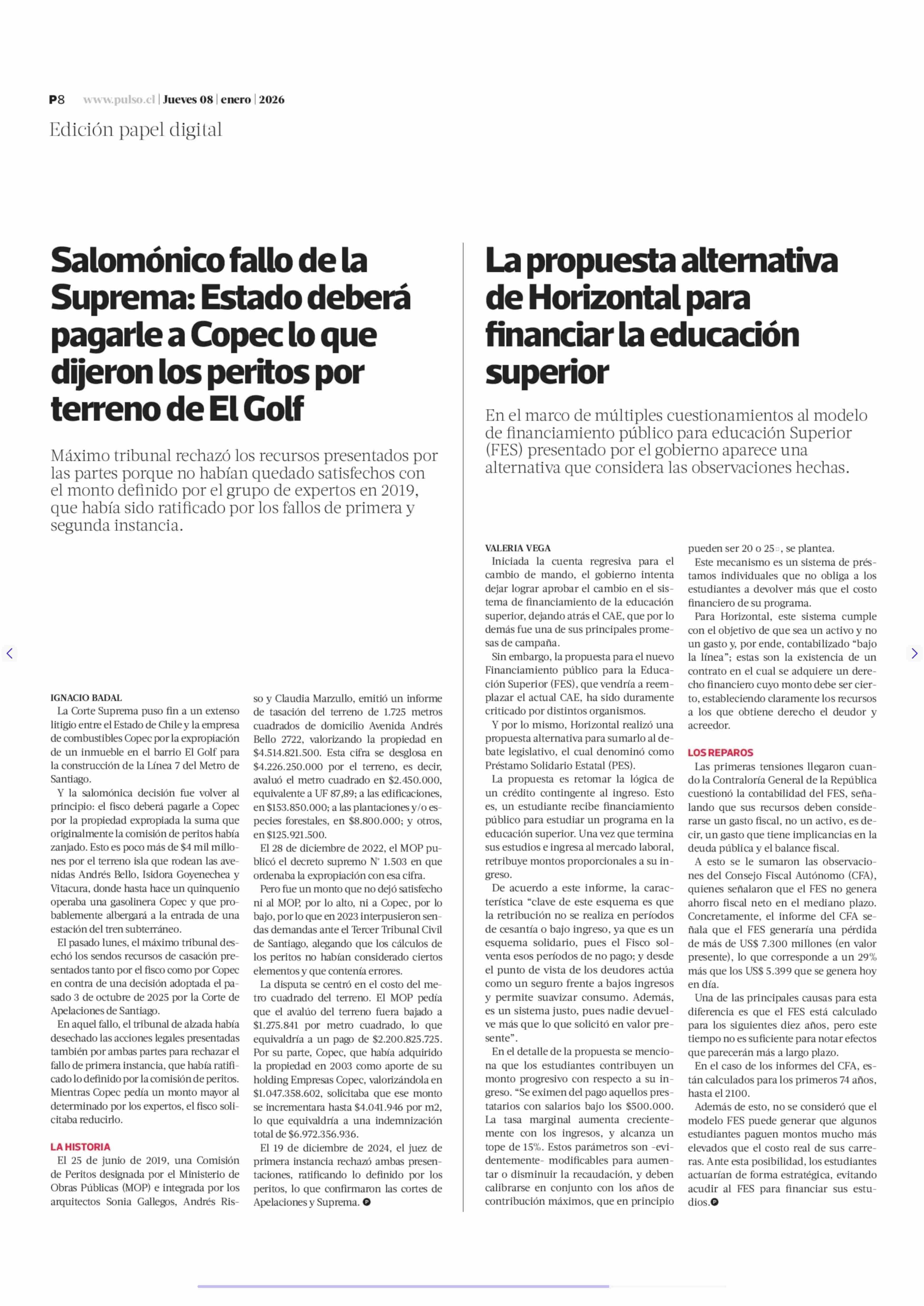 La propuesta alternativa de Horizontal para financiar la educación superior 08-01-2026 La Tercera |