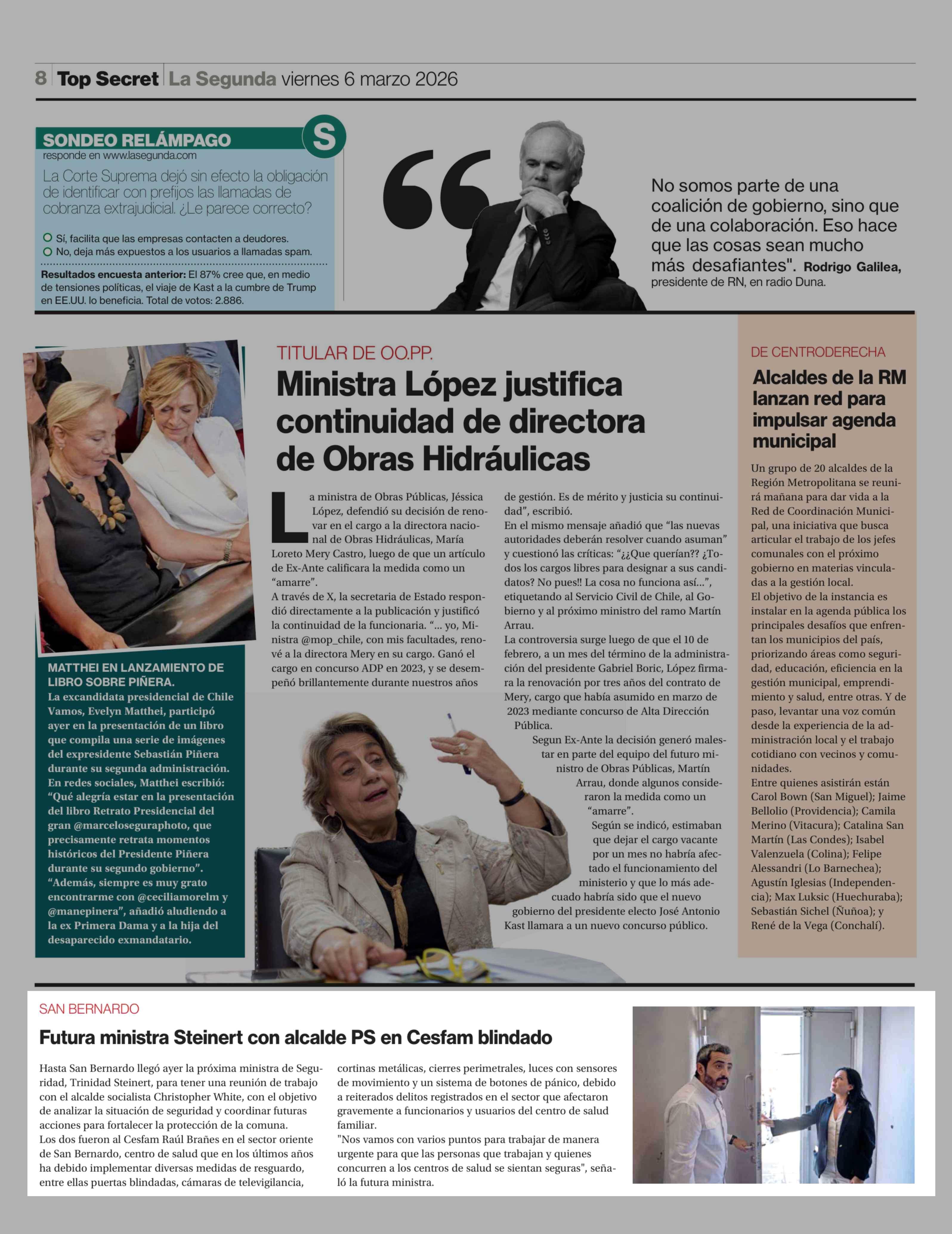 Futura ministra Steinert con alcalde PS en Cesfam blindado 06-03-2026 La Segunda |