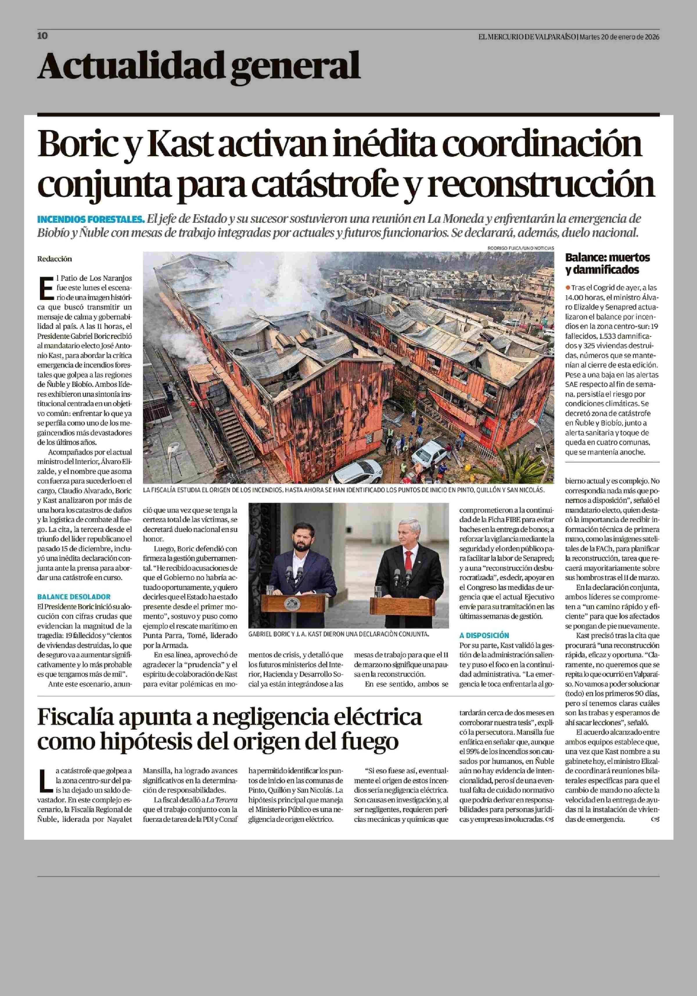 Título: Boric y Kast activan inédita coordinación conjunta para catástrofe y reconstrucción