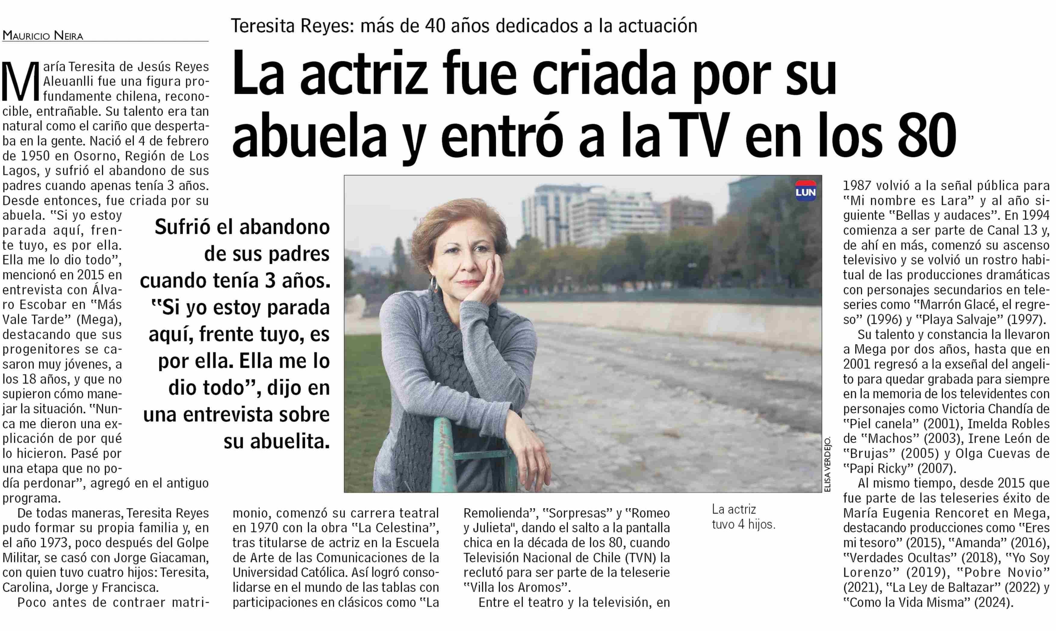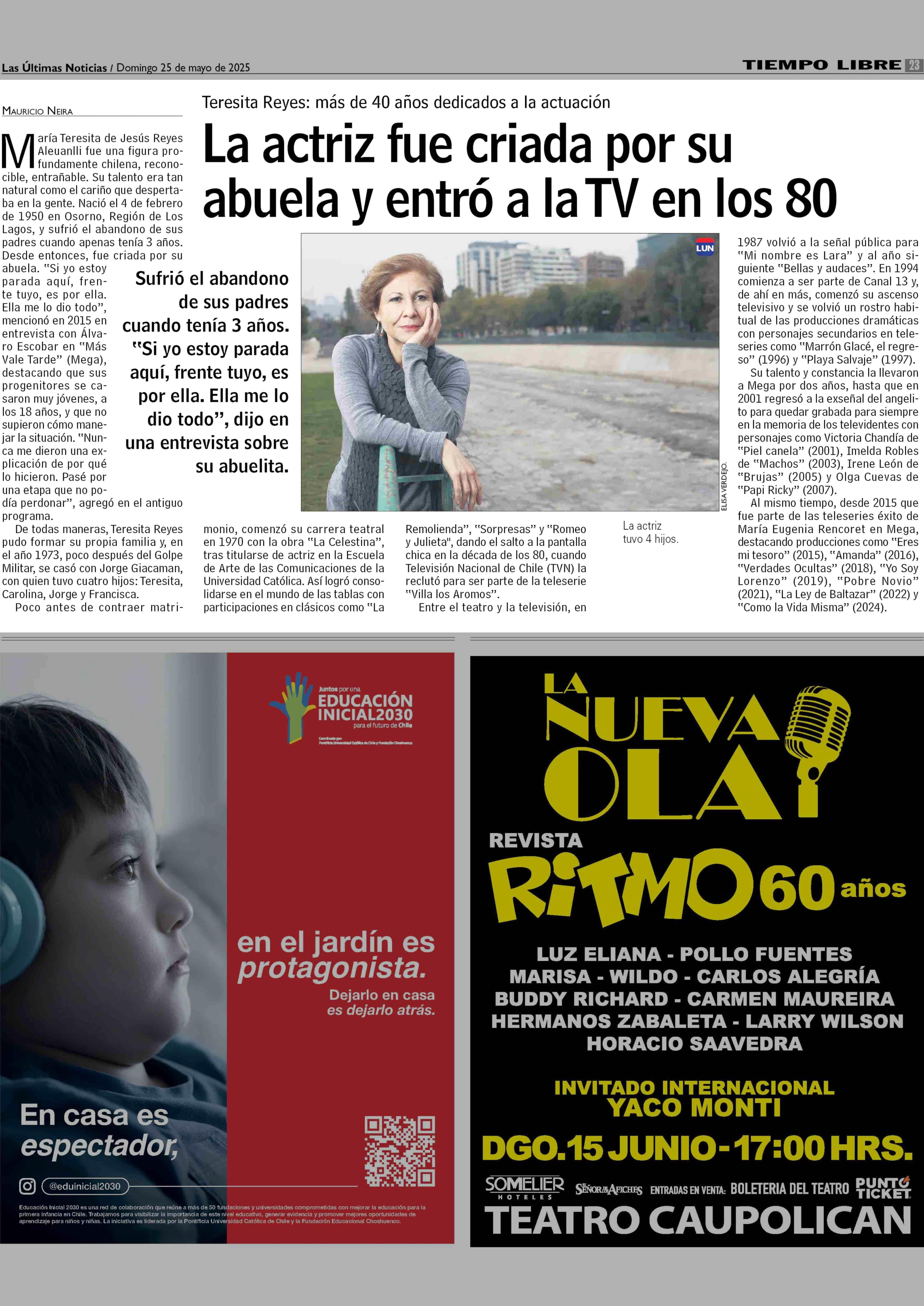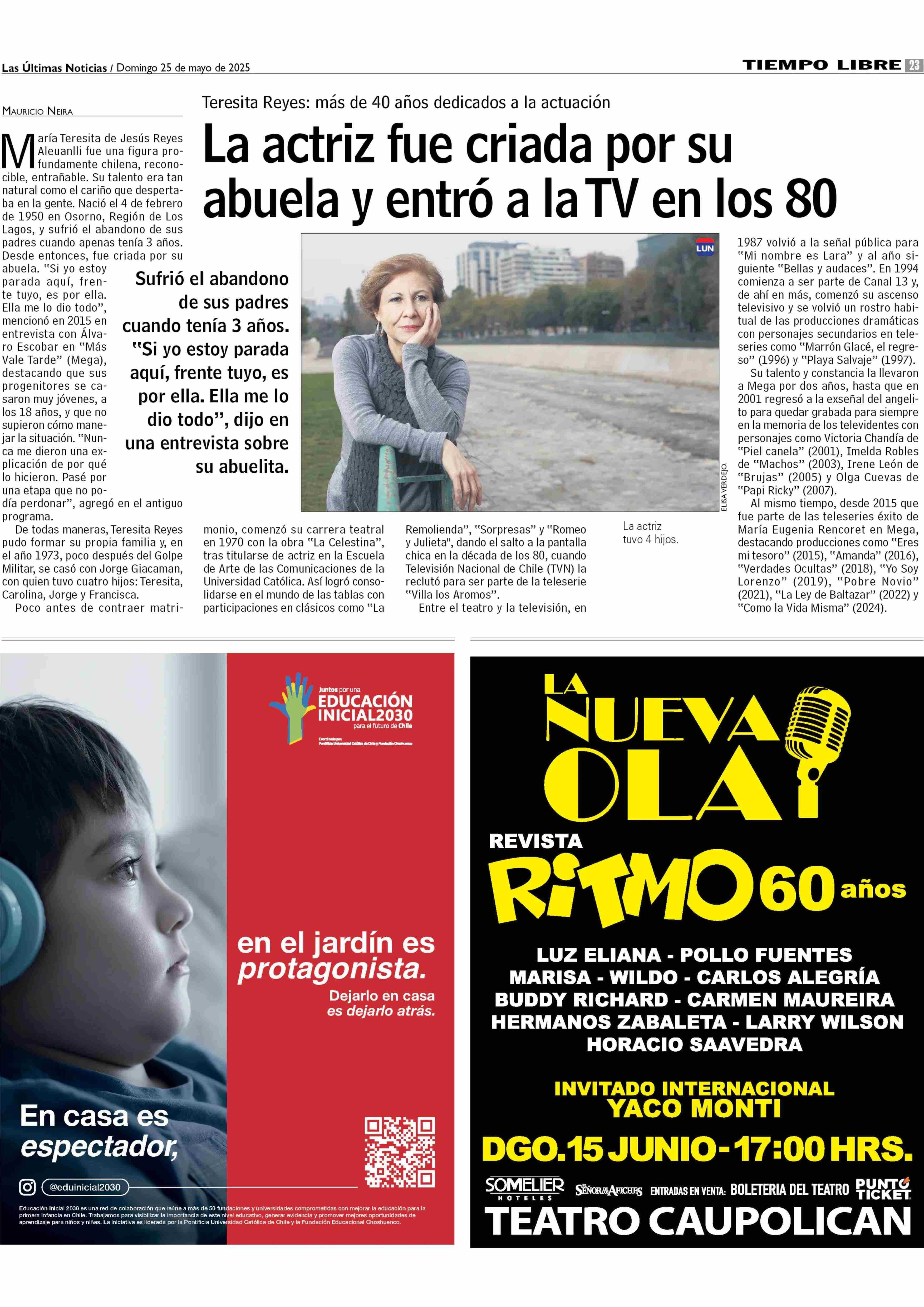 La actriz fue criada por su abuela y entró a la TV en los 80 25-05-2025 Las Últimas Noticias |