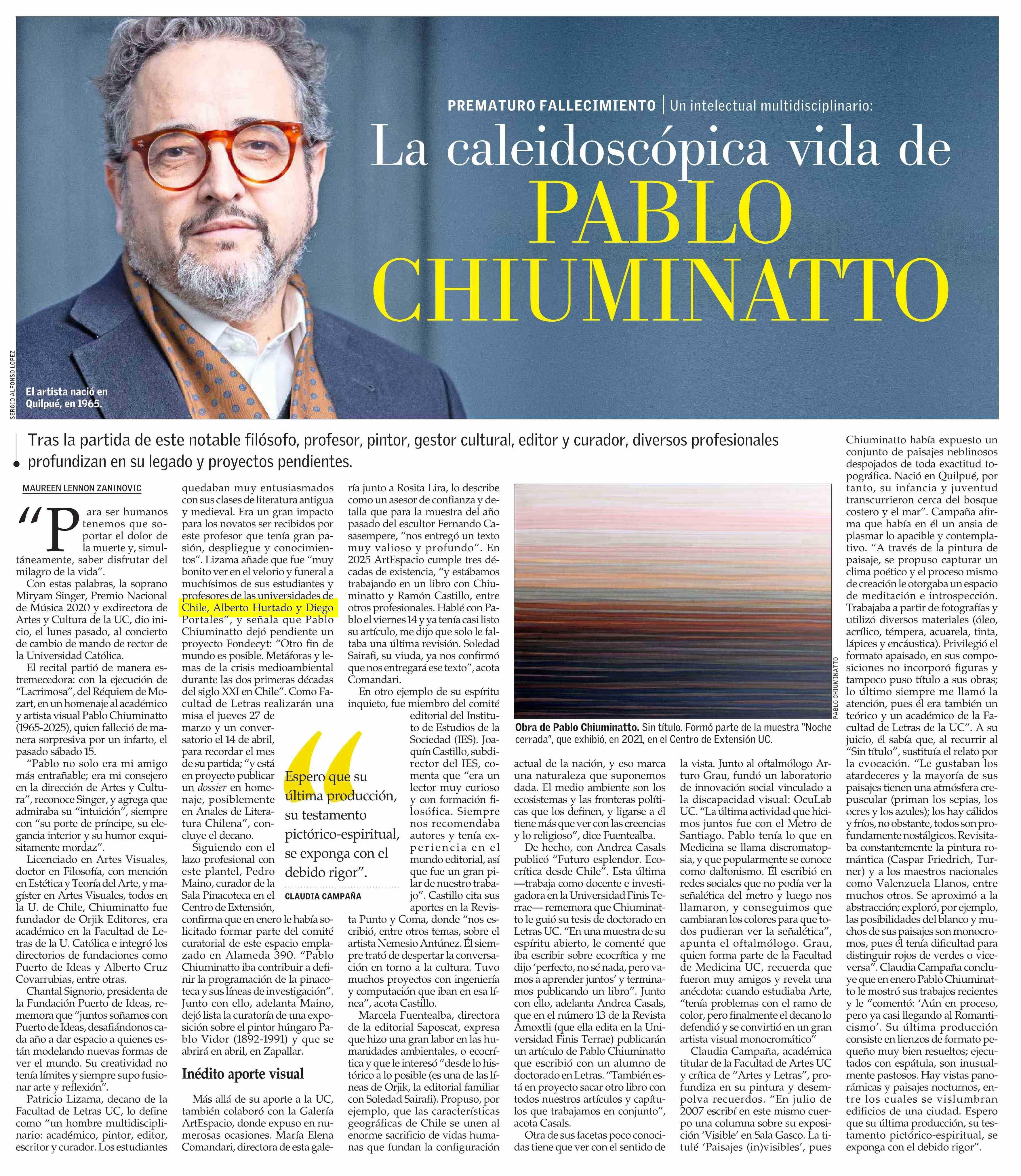 La caleidoscópica vida de PABLO CHIUMINATTO 23-03-2025 El Mercurio |