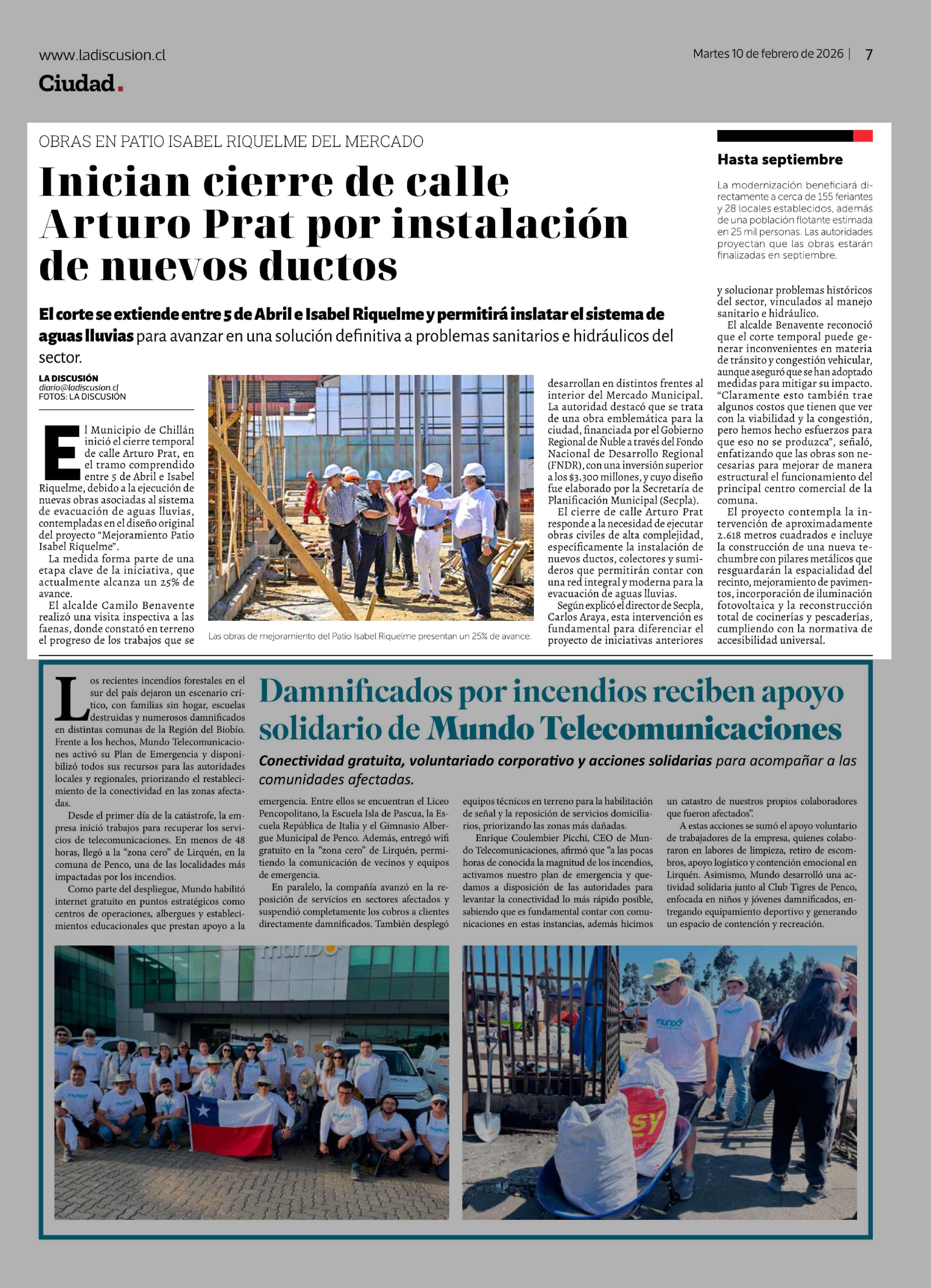 Fecha: 10-02-2026 Sector: Noticia general Región: Región del Ñuble