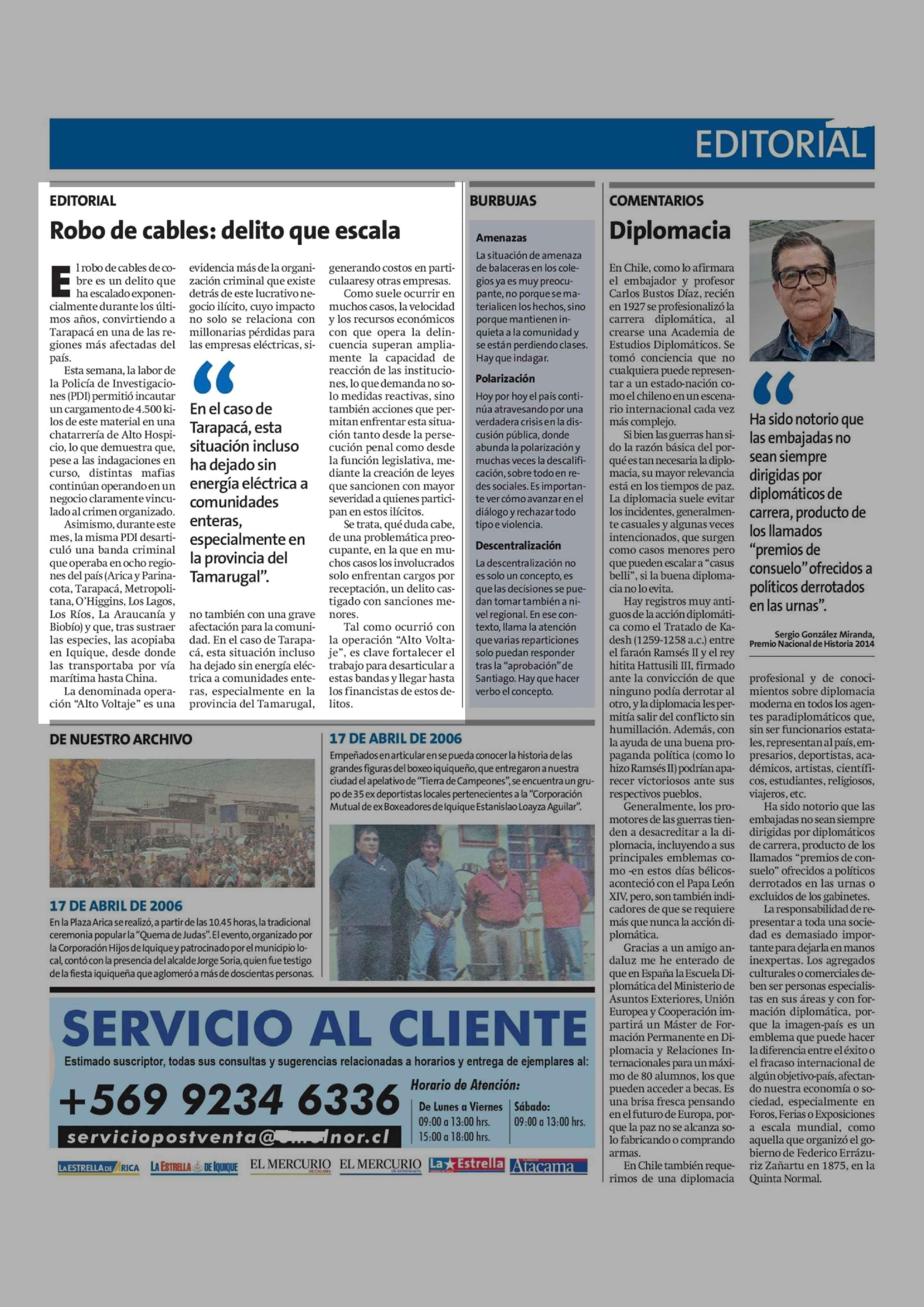 Fecha: 17-04-2026 Sector: Editorial Región: Región de Tarapacá