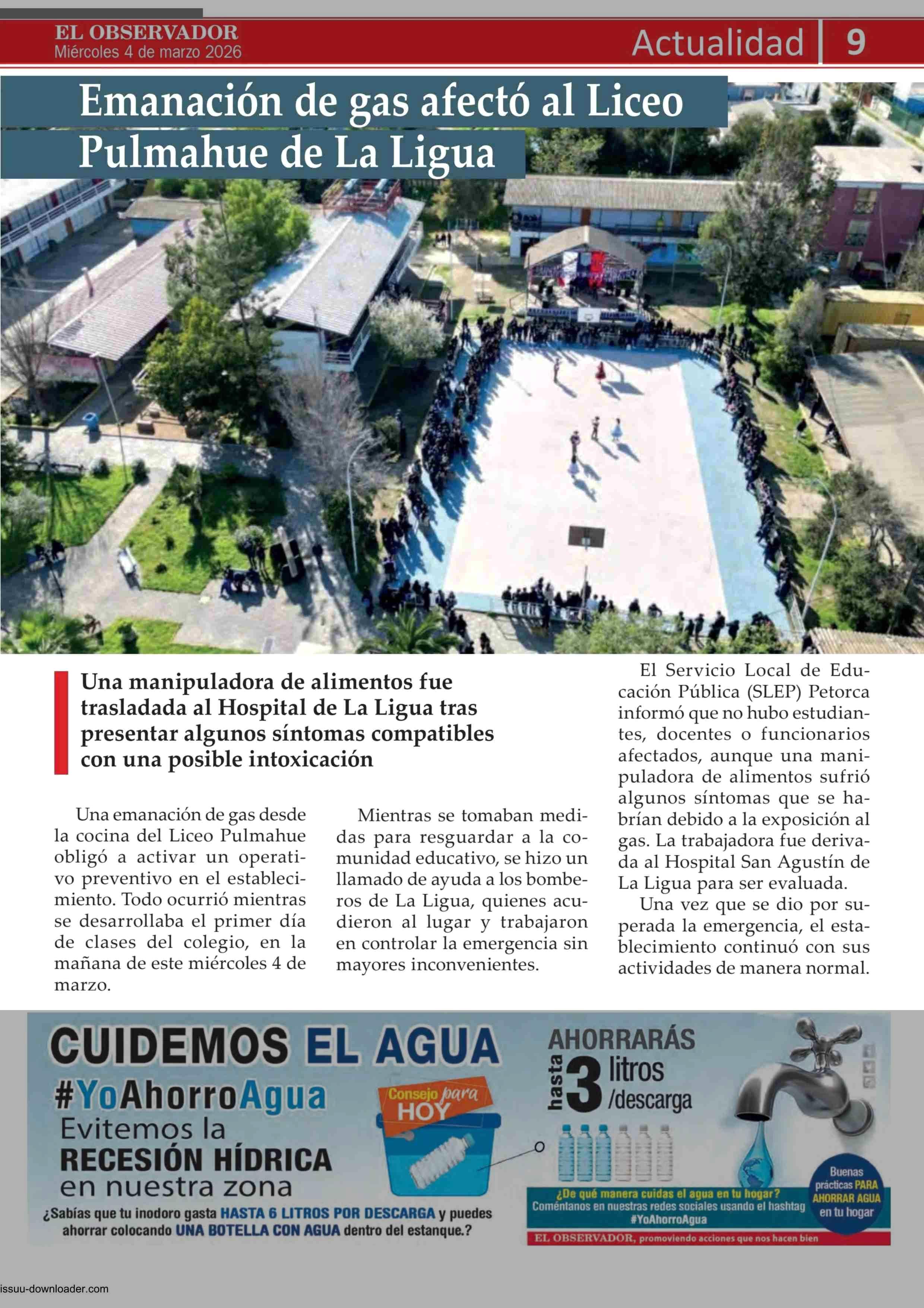 Emanación de gas afectó al Liceo Pulmahue de La Ligua * 04-03-2026 El Observador Vespertino |