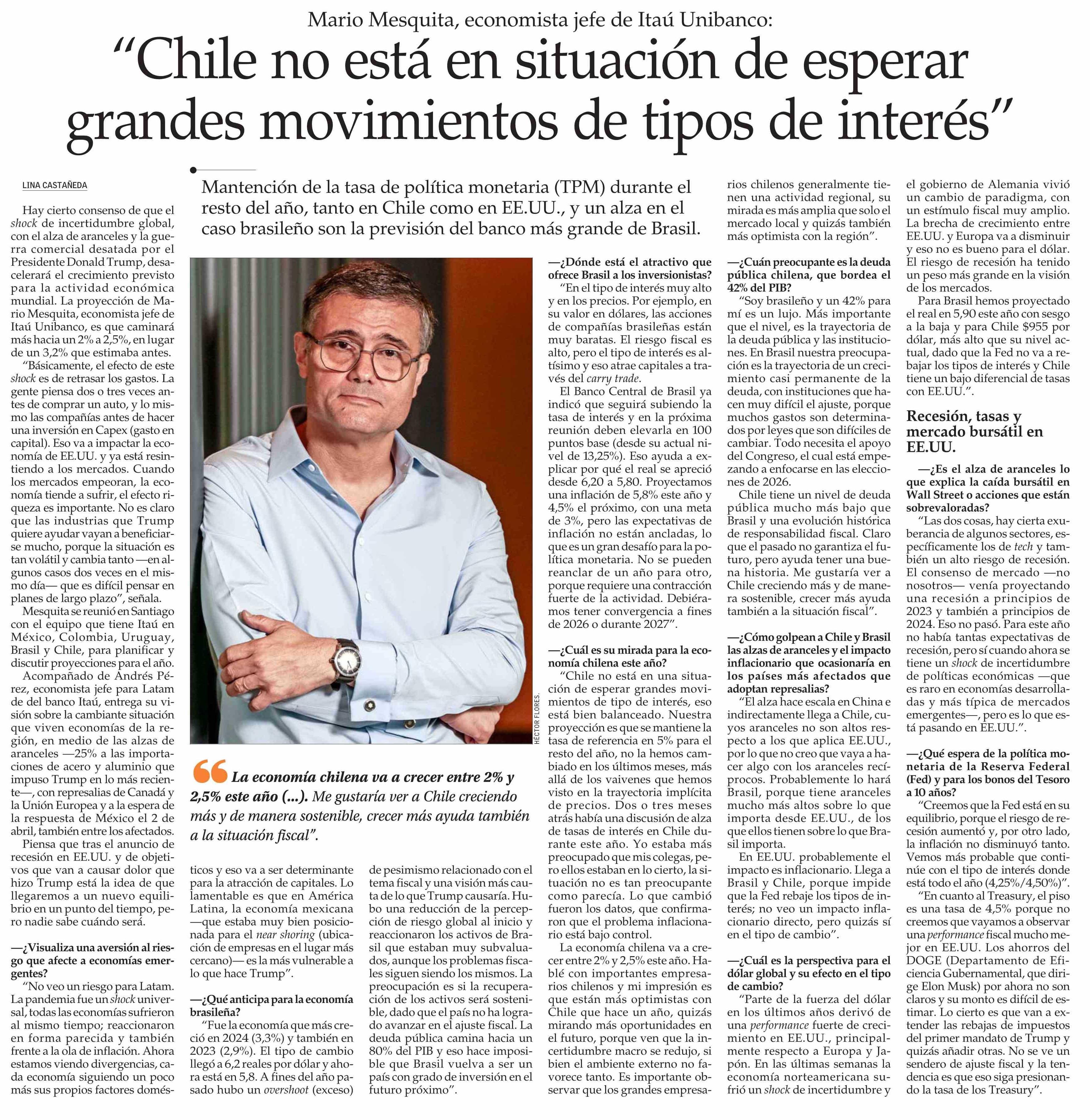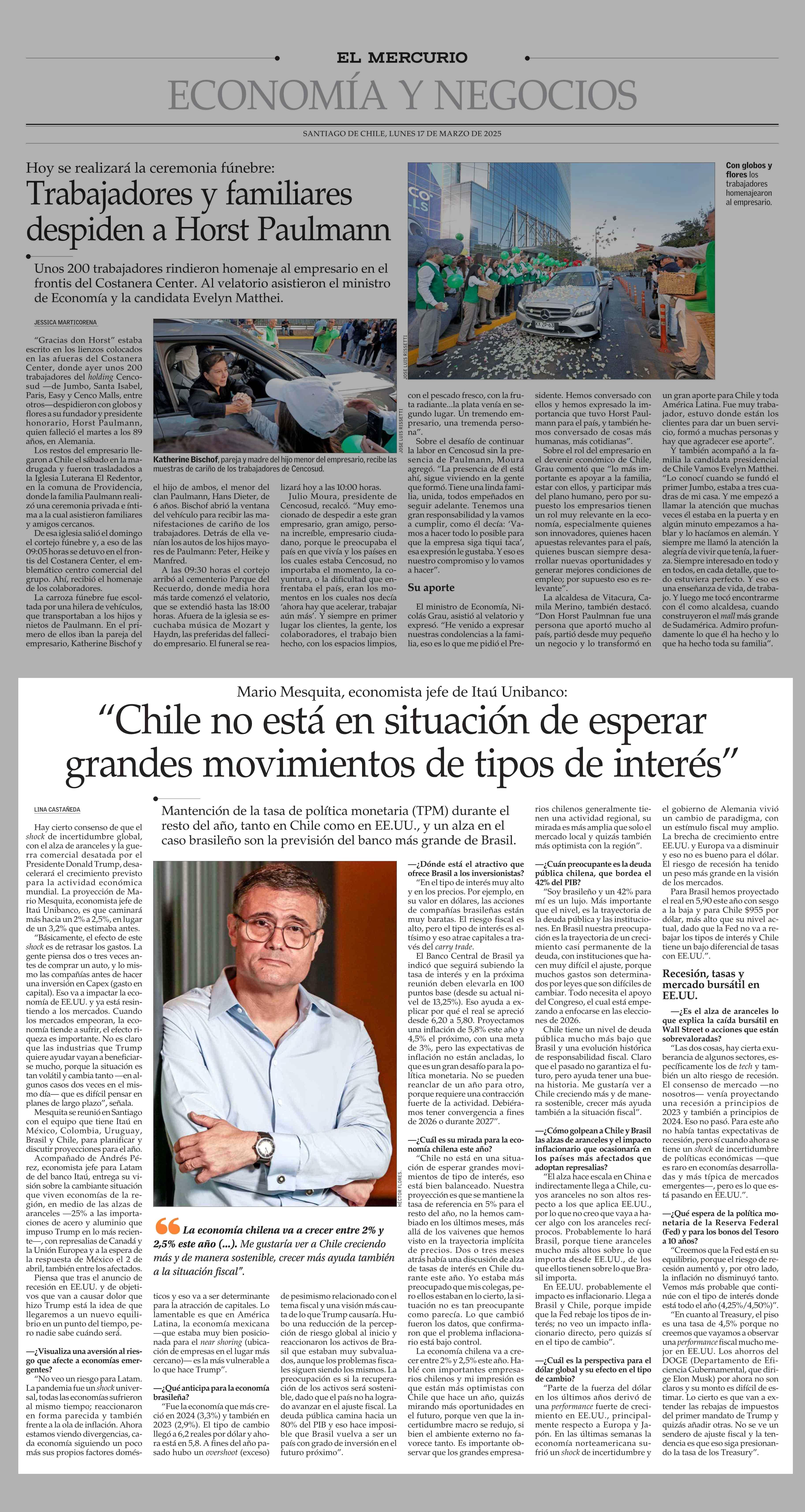 “Chile no está en situación de esperar grandes movimientos de tipos de interés” 17-03-2025 El Mercurio |