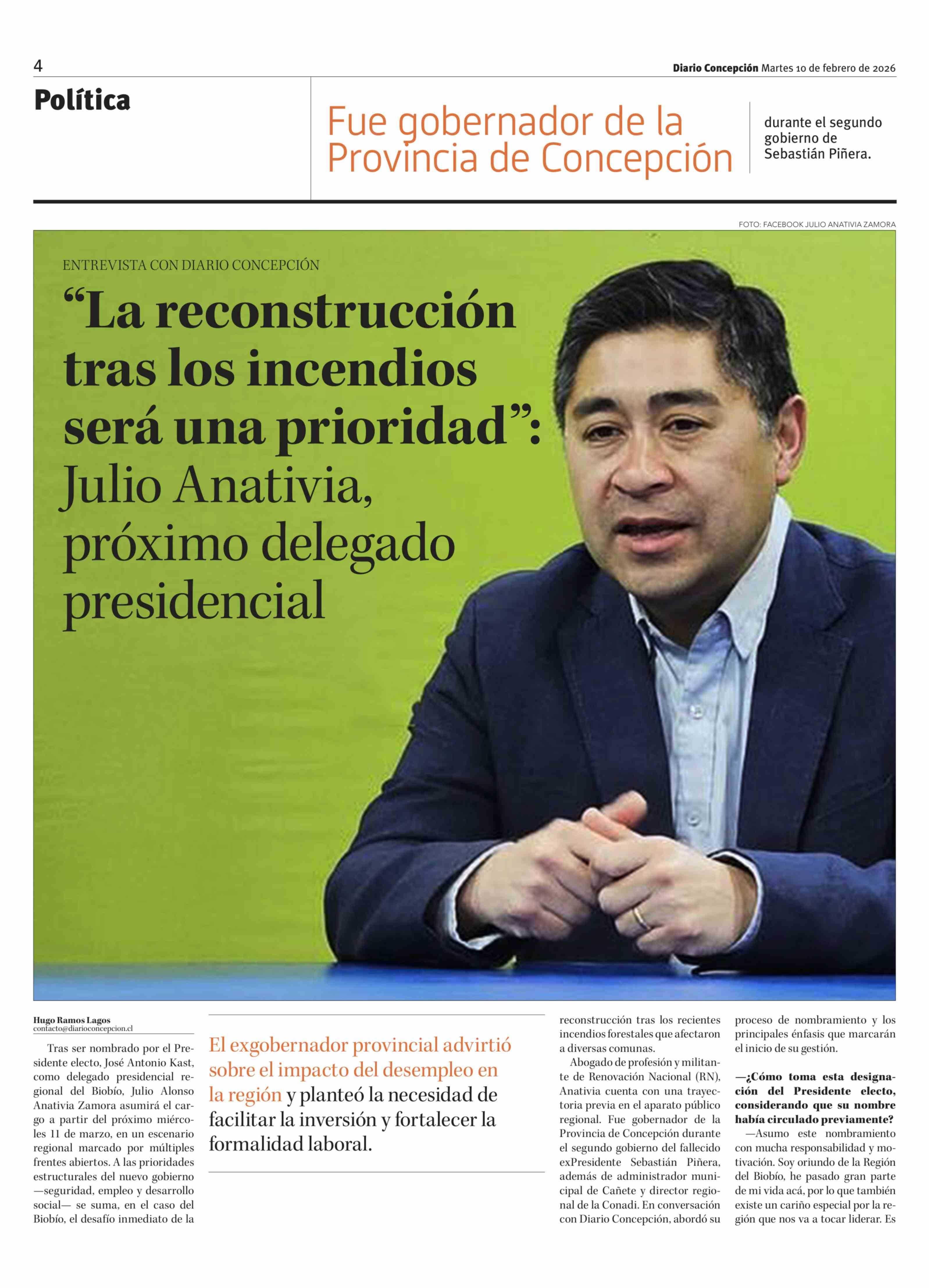 Título: "La reconstrucción tras los incendios será una prioridad": Julio Anativia, próximo delegado presidencial