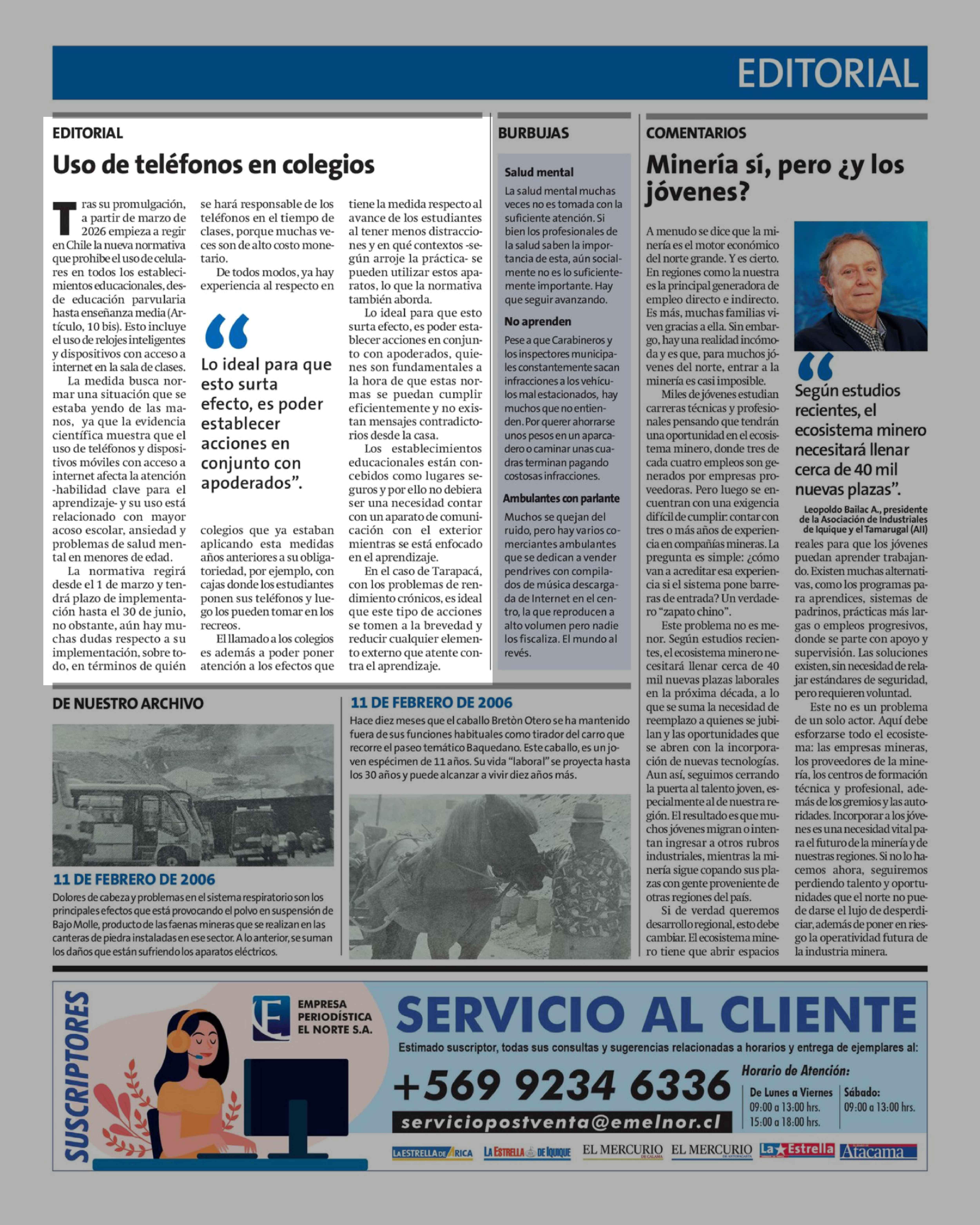 Editorial: Uso de teléfonos en colegios 11-02-2026 La Estrella de Iquique |