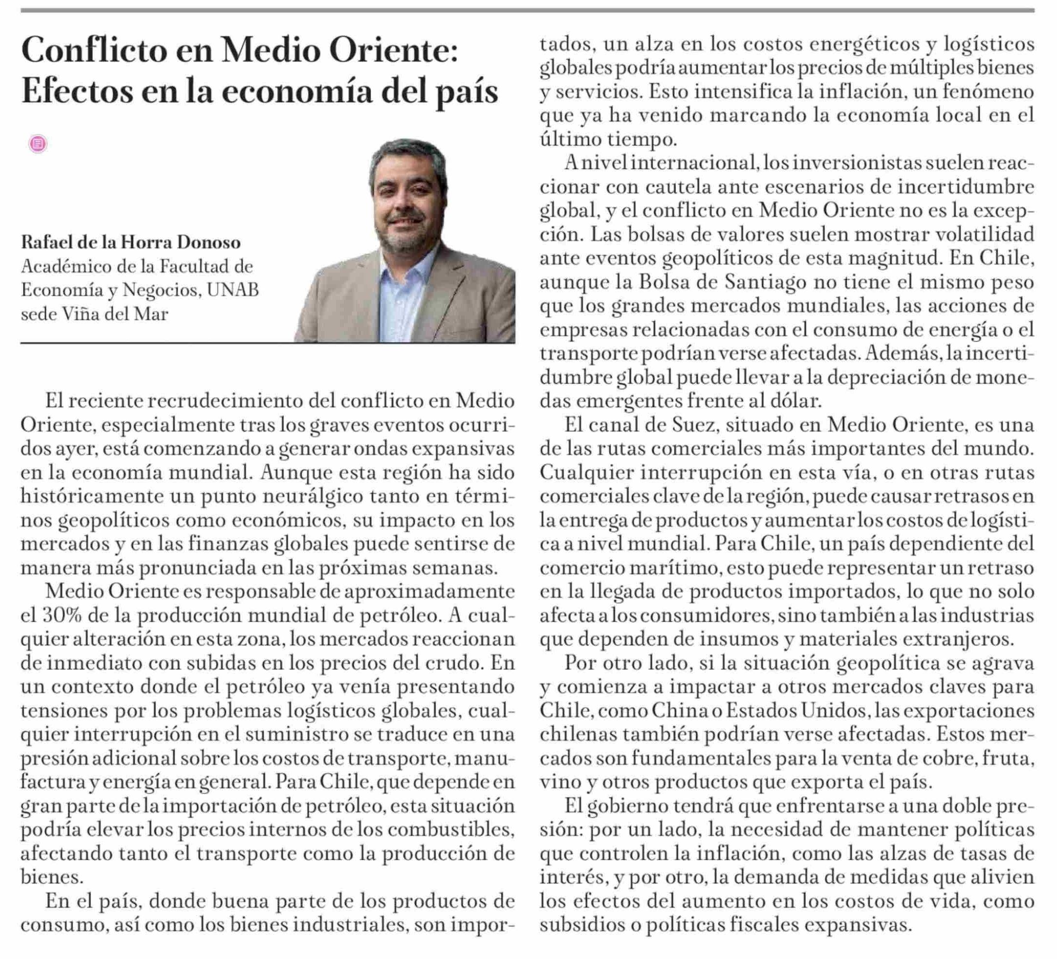 | Título: | Conflicto en Medio Oriente: Efectos en la economía del país |
