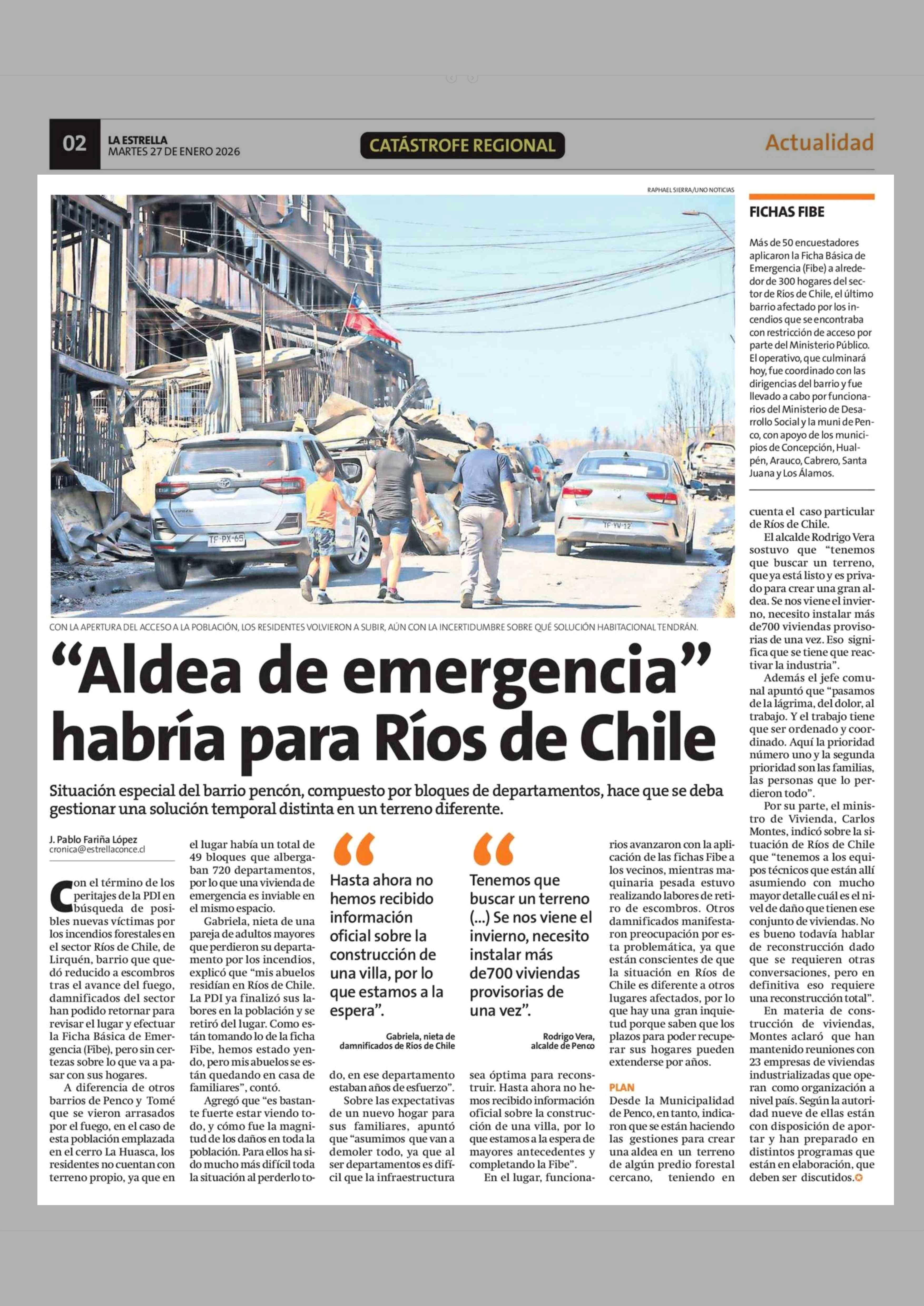 "Aldea de emergencia" habría para Ríos de Chile 27-01-2026 La Estrella de Concepción |