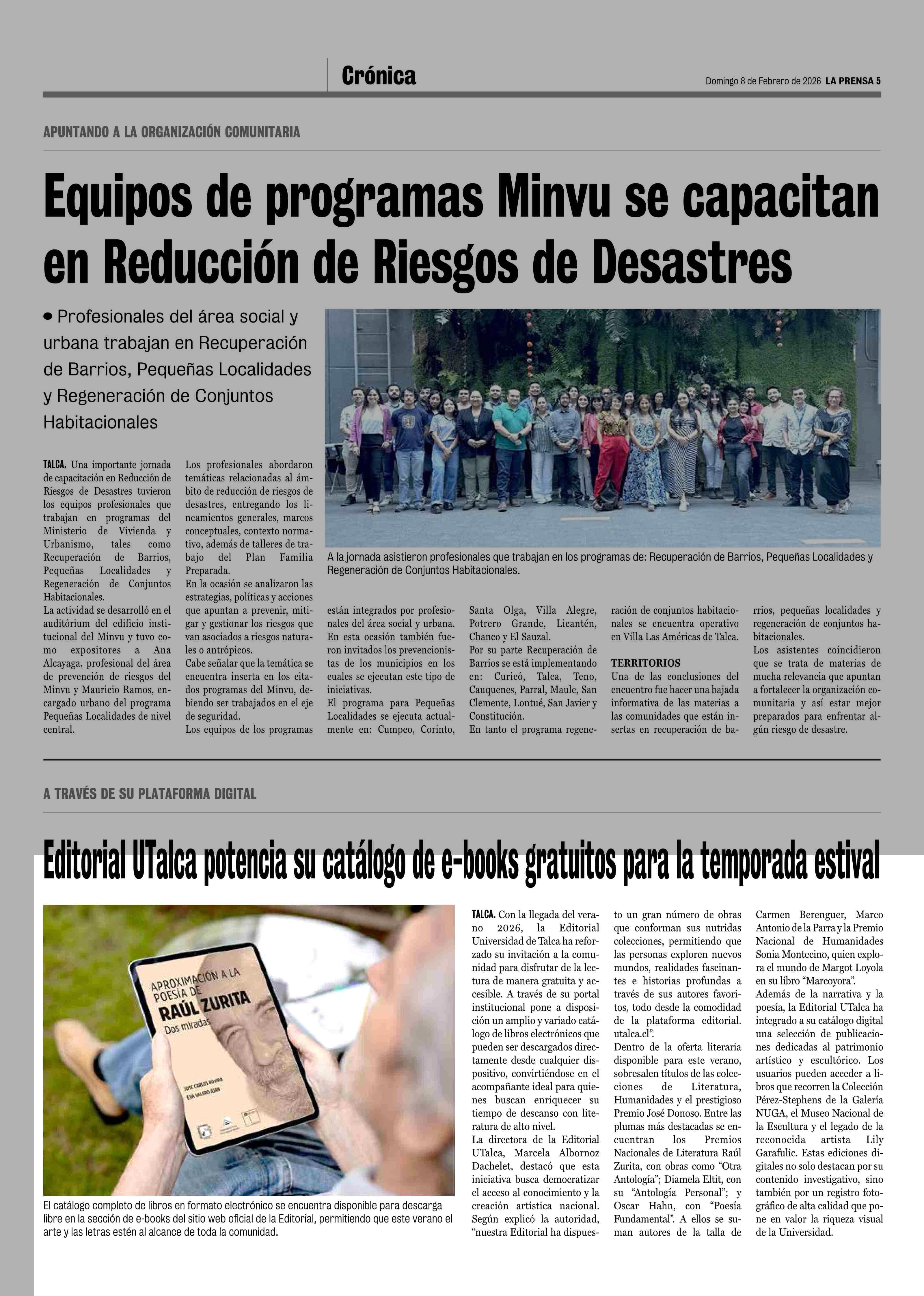 Editorial UTalca potencia su catálogo de e-books gratuitos para la temporada estival 08-02-2026 La Prensa de Curicó |
