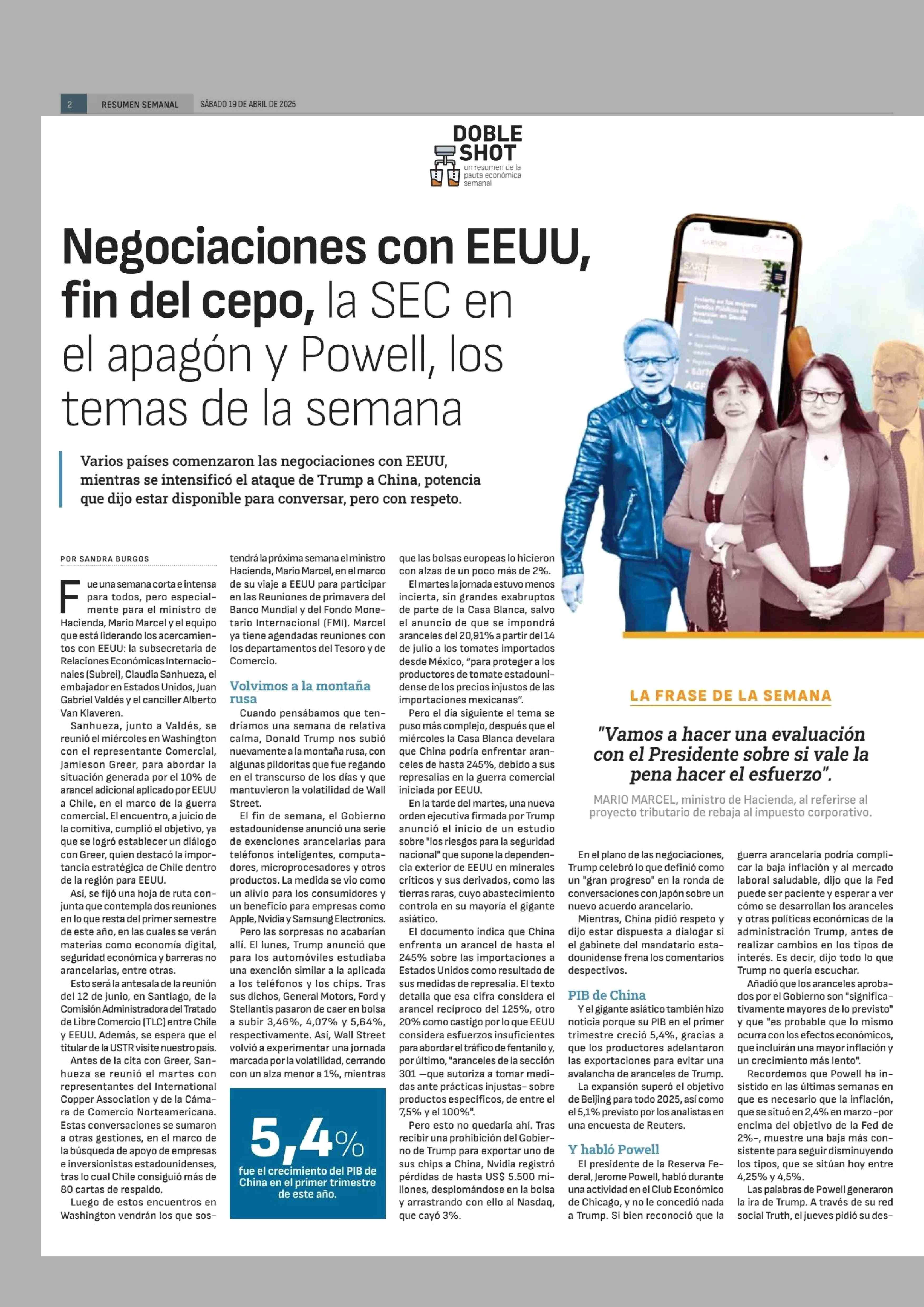 Negociaciones con EEUU, fin del cepo, la SEC en el apagón y Powell, los temas de la semana 19-04-2025 Diario Financiero |