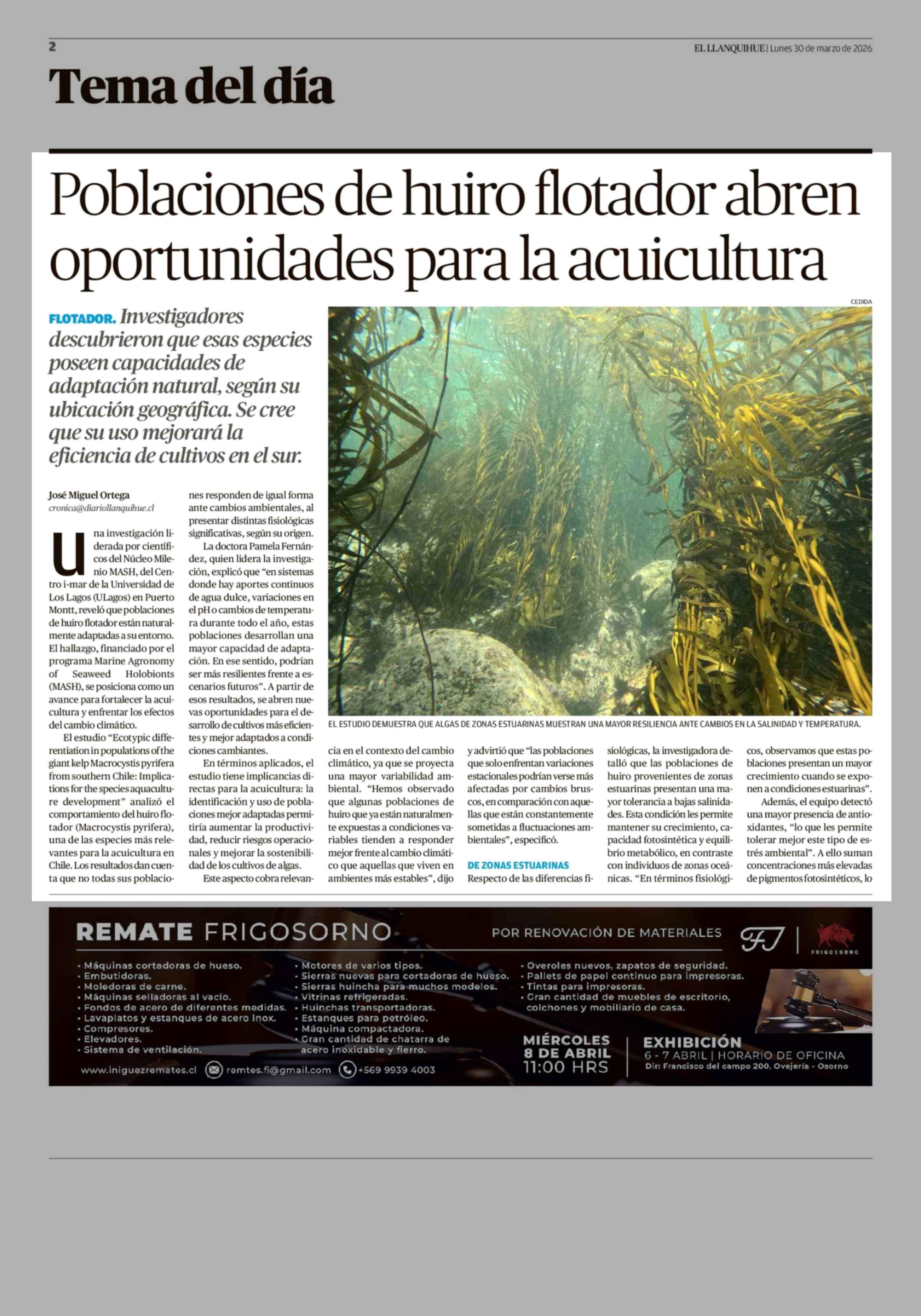 Título: Poblaciones de huiro flotador abren oportunidades para la acuicultura