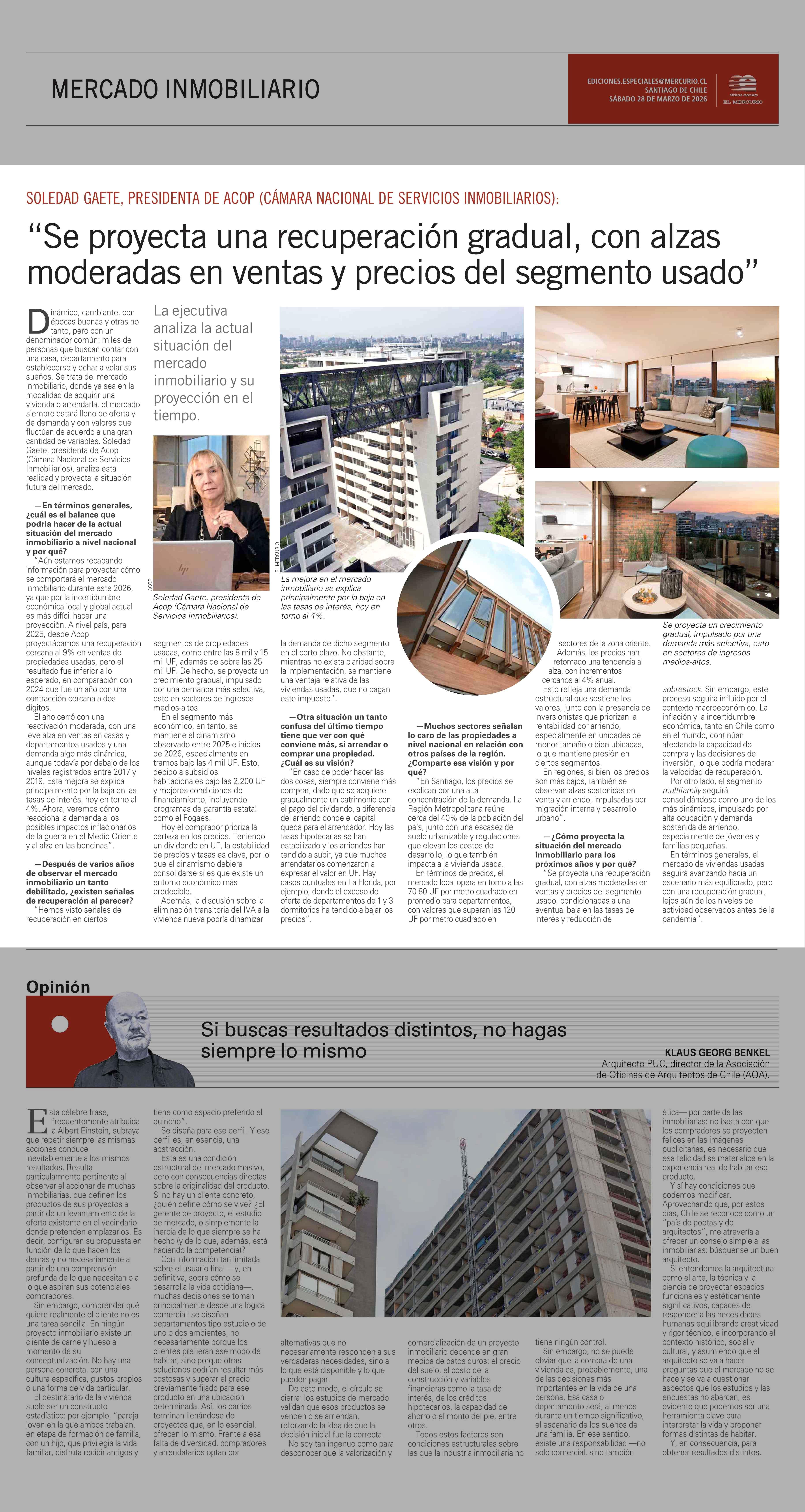 Título: “Se proyecta una recuperación gradual, con alzas moderadas en ventas y precios del segmento usado”
