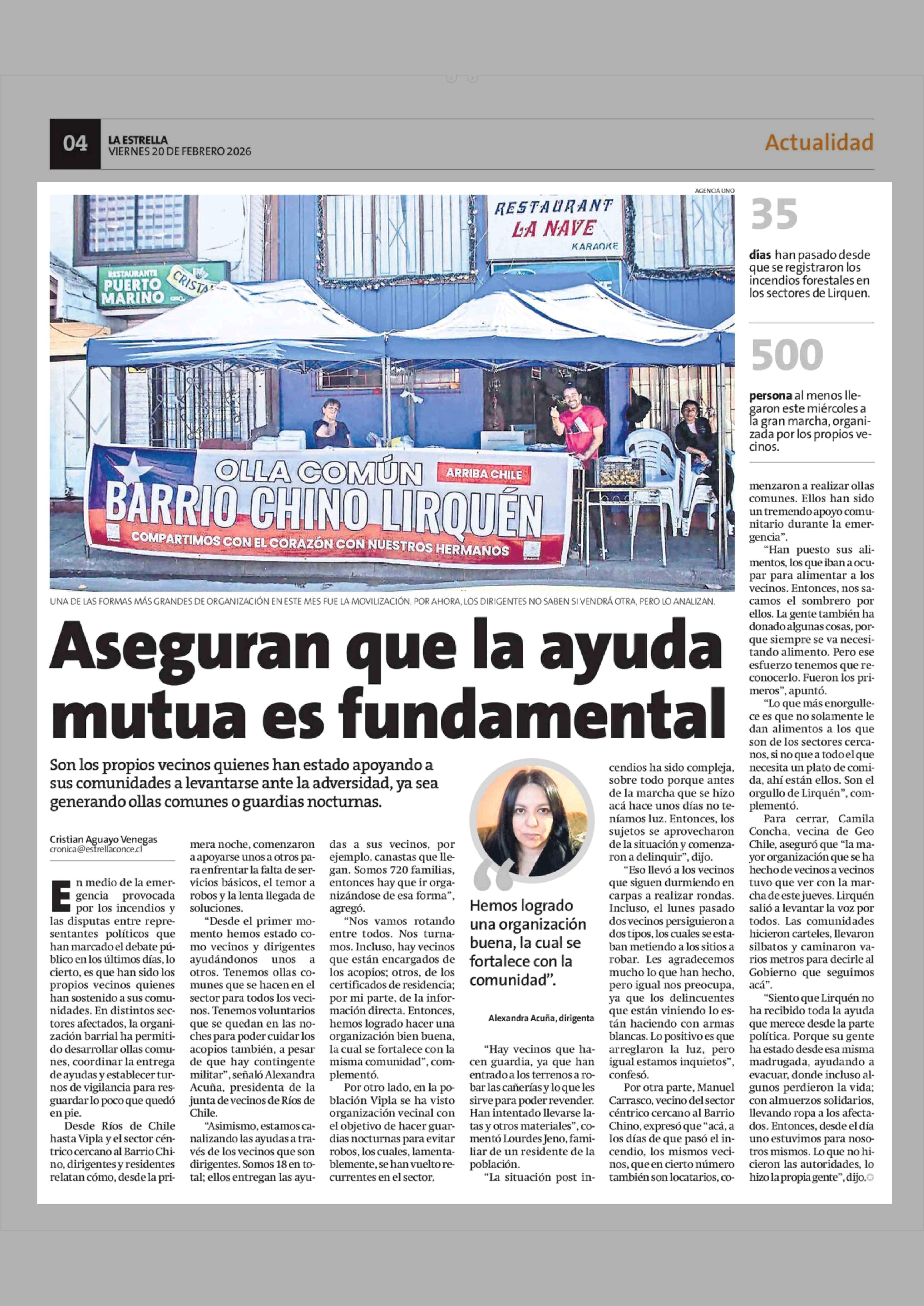 Aseguran que la ayuda mutua es fundamental 20-02-2026 La Estrella de Concepción |