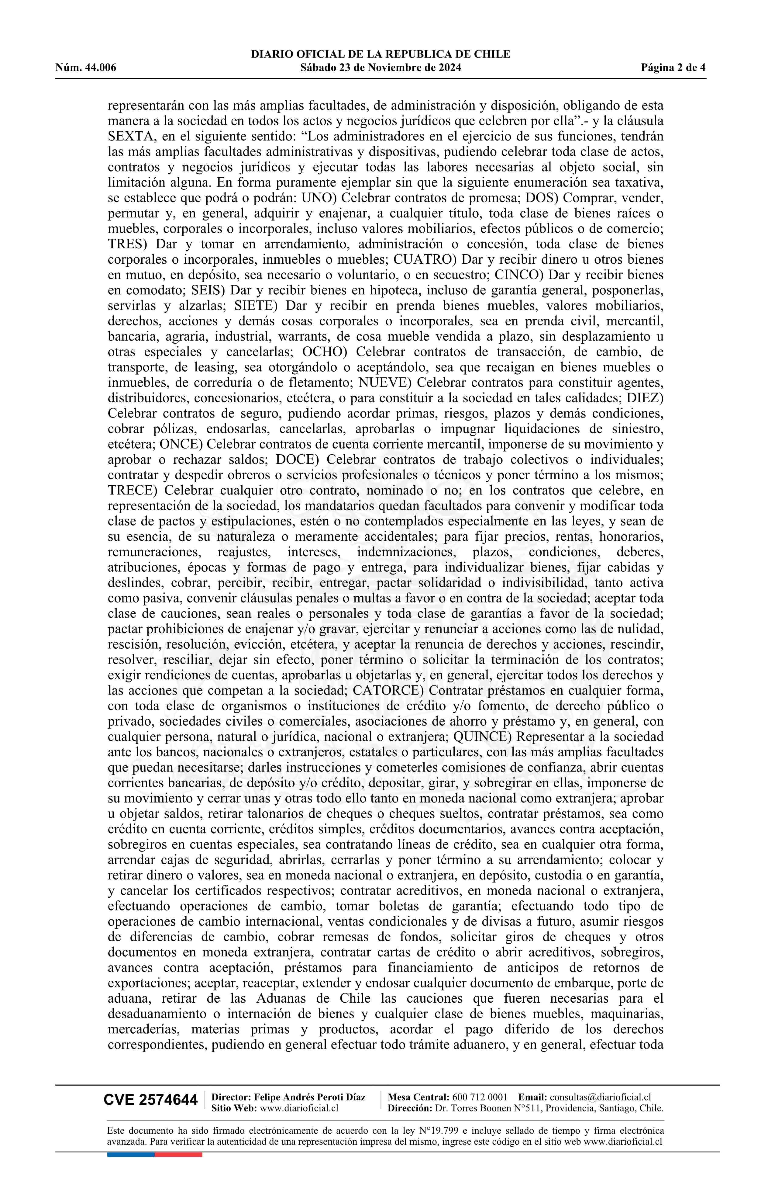 SOCIEDAD DE TRANSPORTES ASSA LIMITADA 23-11-2024 Diario Oficial Edición Electrónica |