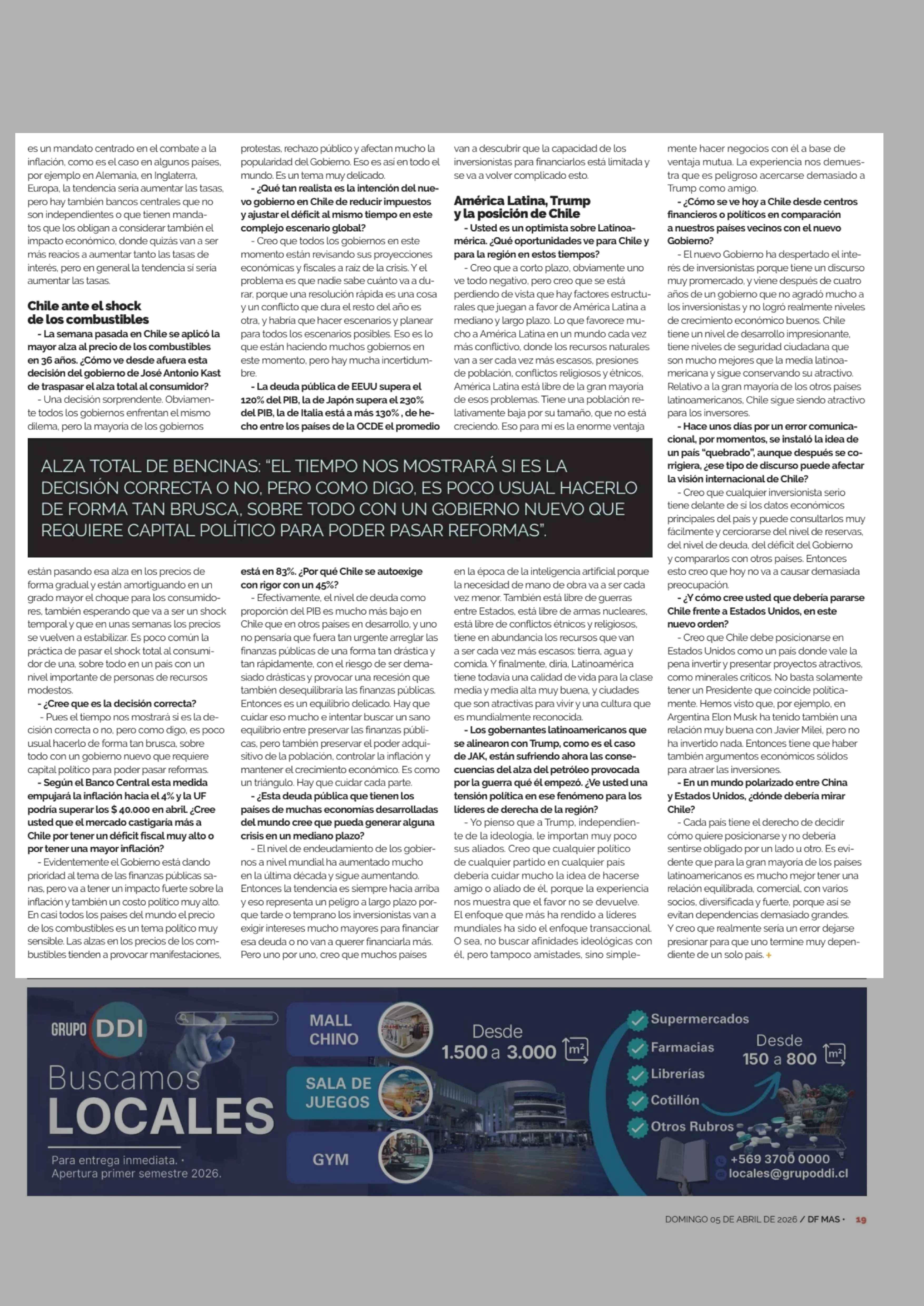 MICHAEL STOTT: 'EL MUNDO CORRE PELIGRO DE TERMINAR ESTA GUERRA EN UNA SITUACION PEOR QUE ANTES' 05-04-2026 Diario Financiero |