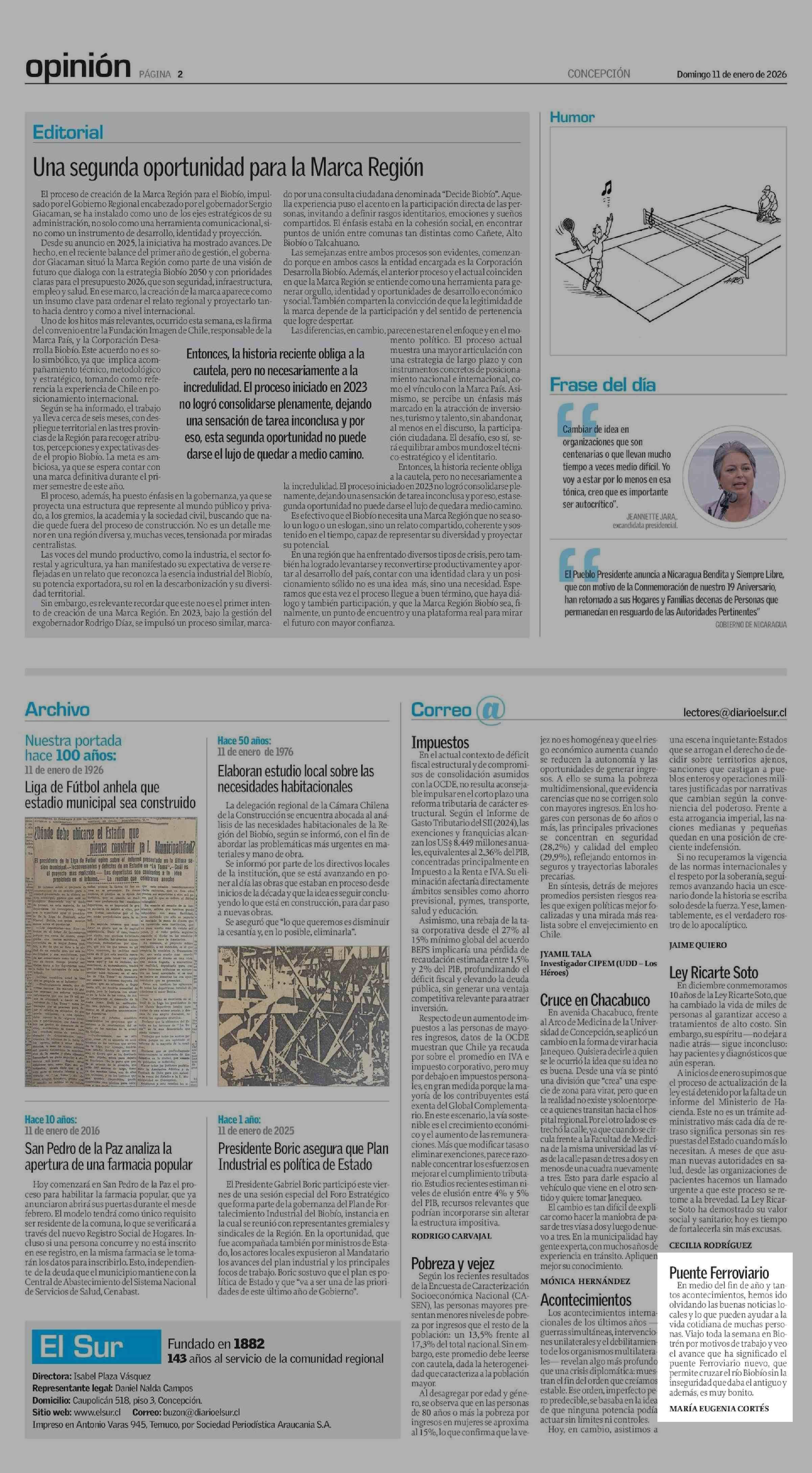 Cartas: Puente Ferroviario 11-01-2026 El Sur |