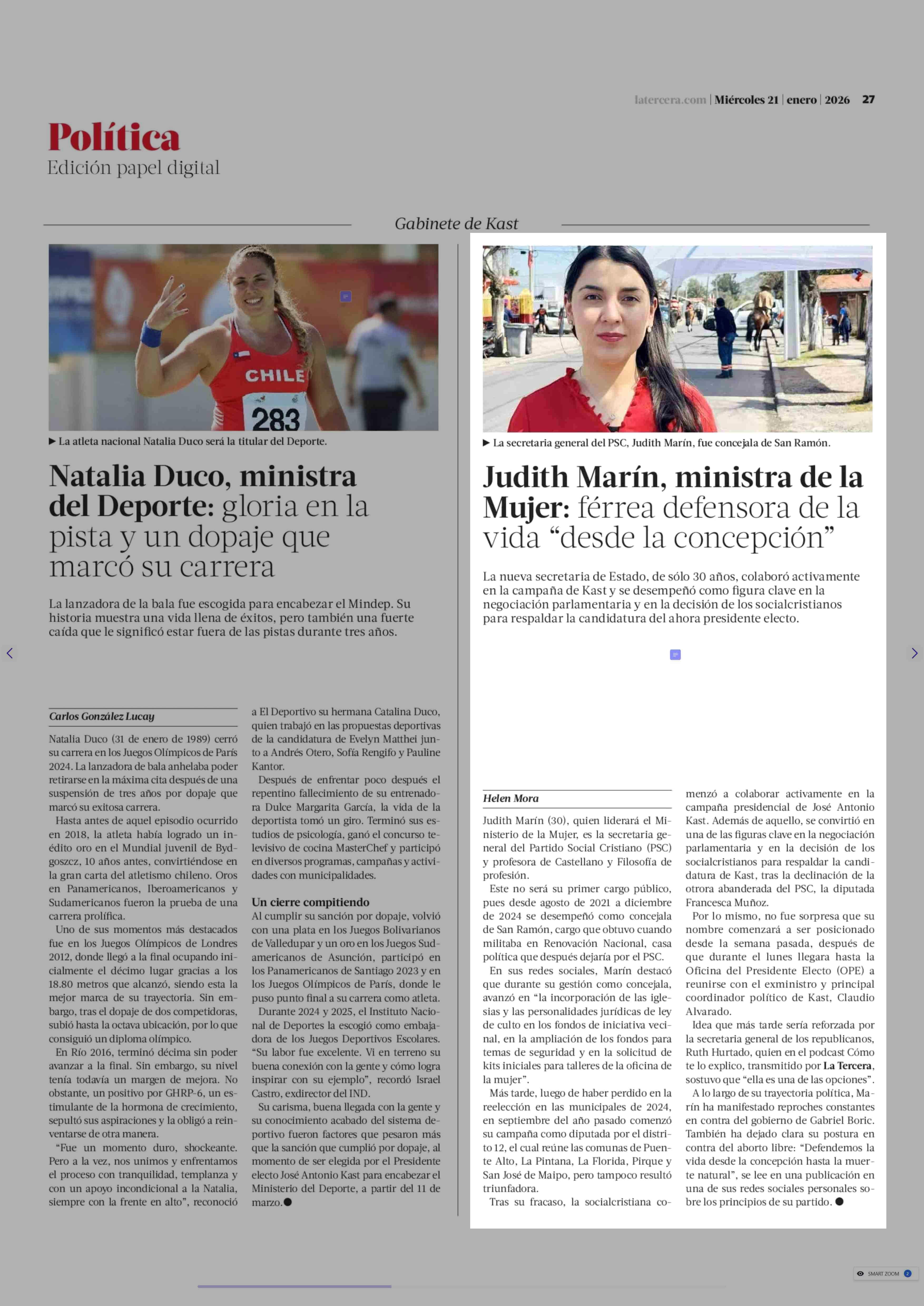 Fuente: La Tercera (La Tercera) Página(s): 27