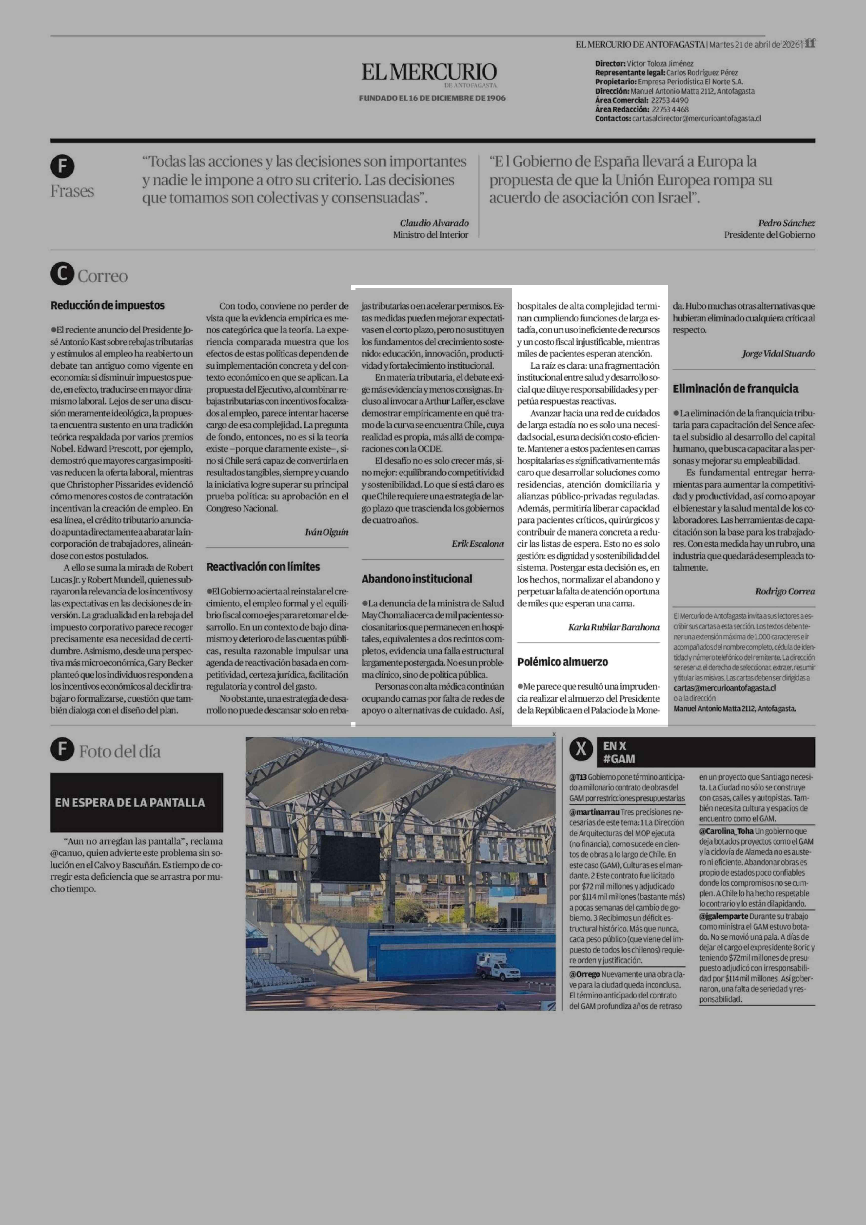 CARTAS: Abandono institucional 21-04-2026 El Mercurio de Antofagasta |