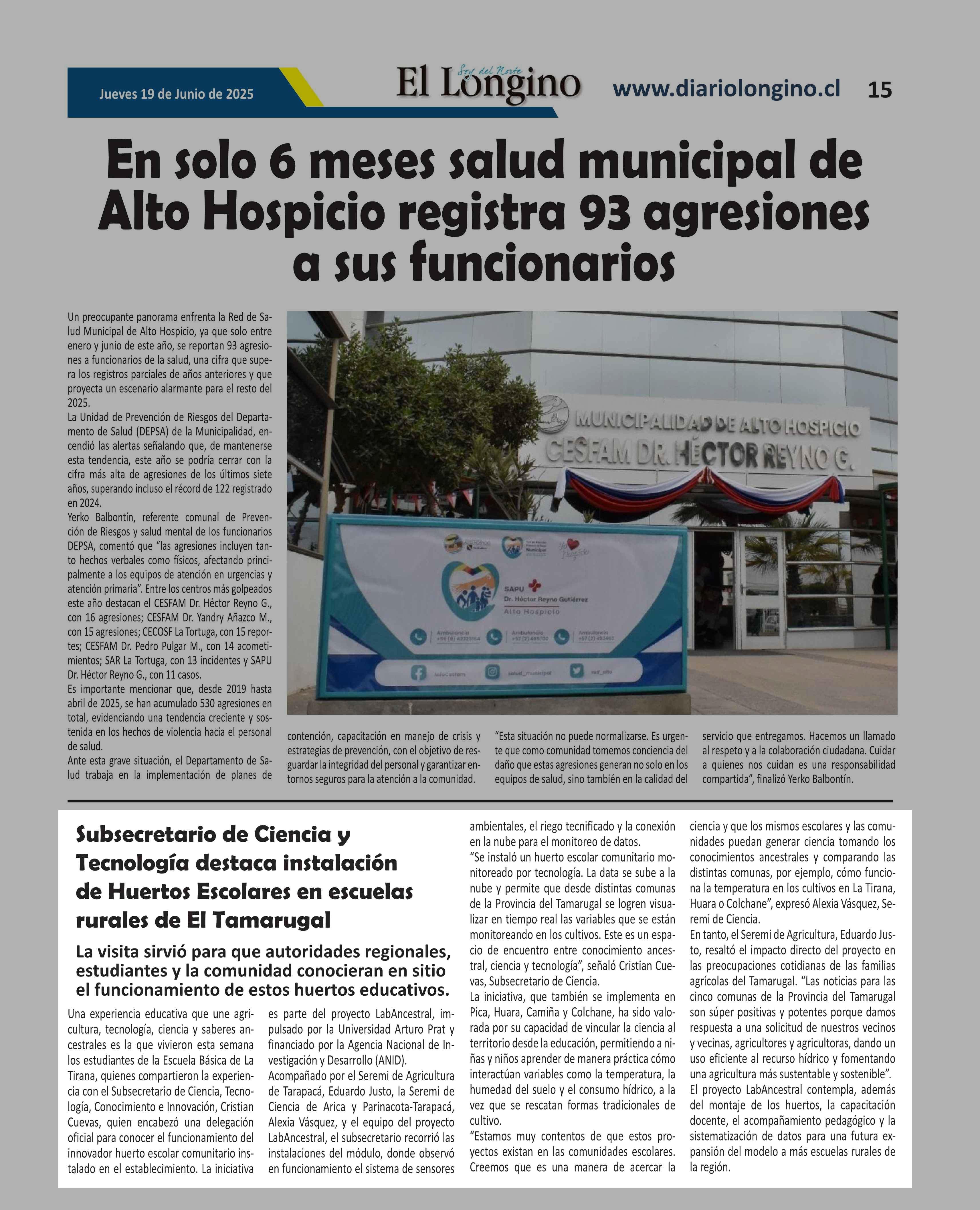 Fecha: 19-06-2025 Sector: Noticia general Región: Región de Tarapacá