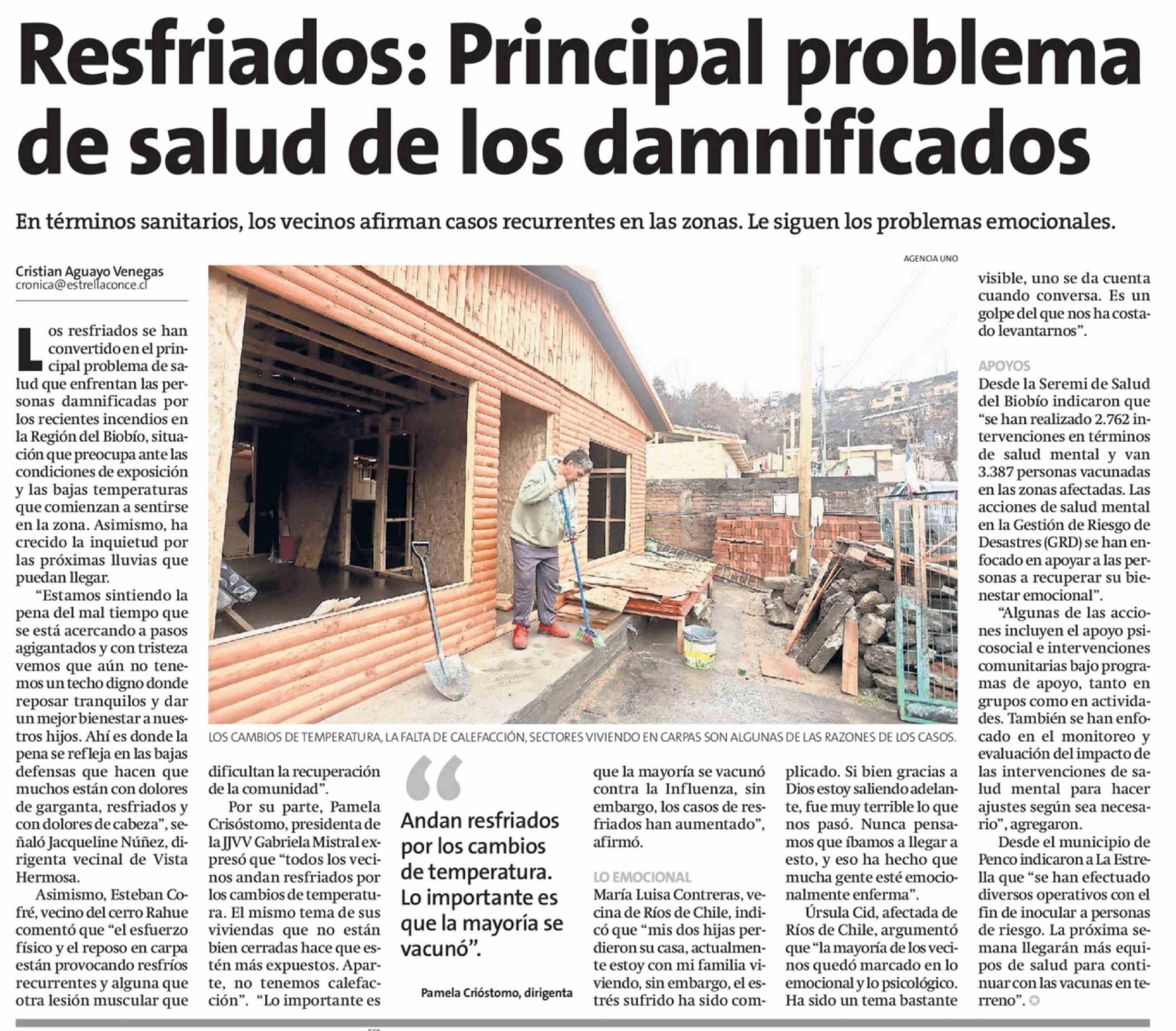 Resfriados: Principal problema de salud de los damnificados 08-04-2026 La Estrella de Concepción |